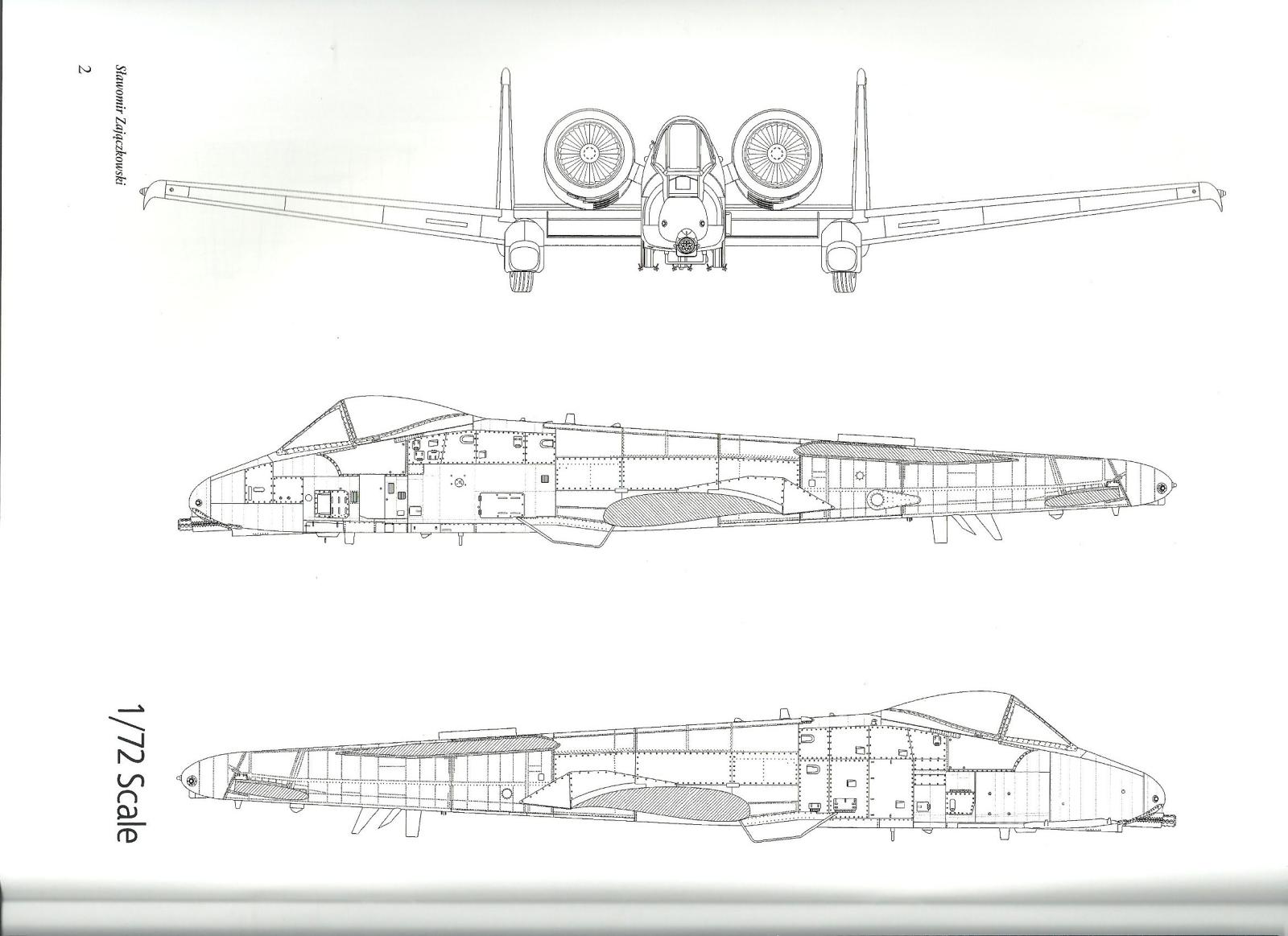 This booklet has 5 pages of line drawings for the Thunderbolt II in 1/72 scale, providing side views (both port and starboard) top view, bottom view and side-view without the wing or rudder obstructing the fuselage profile.