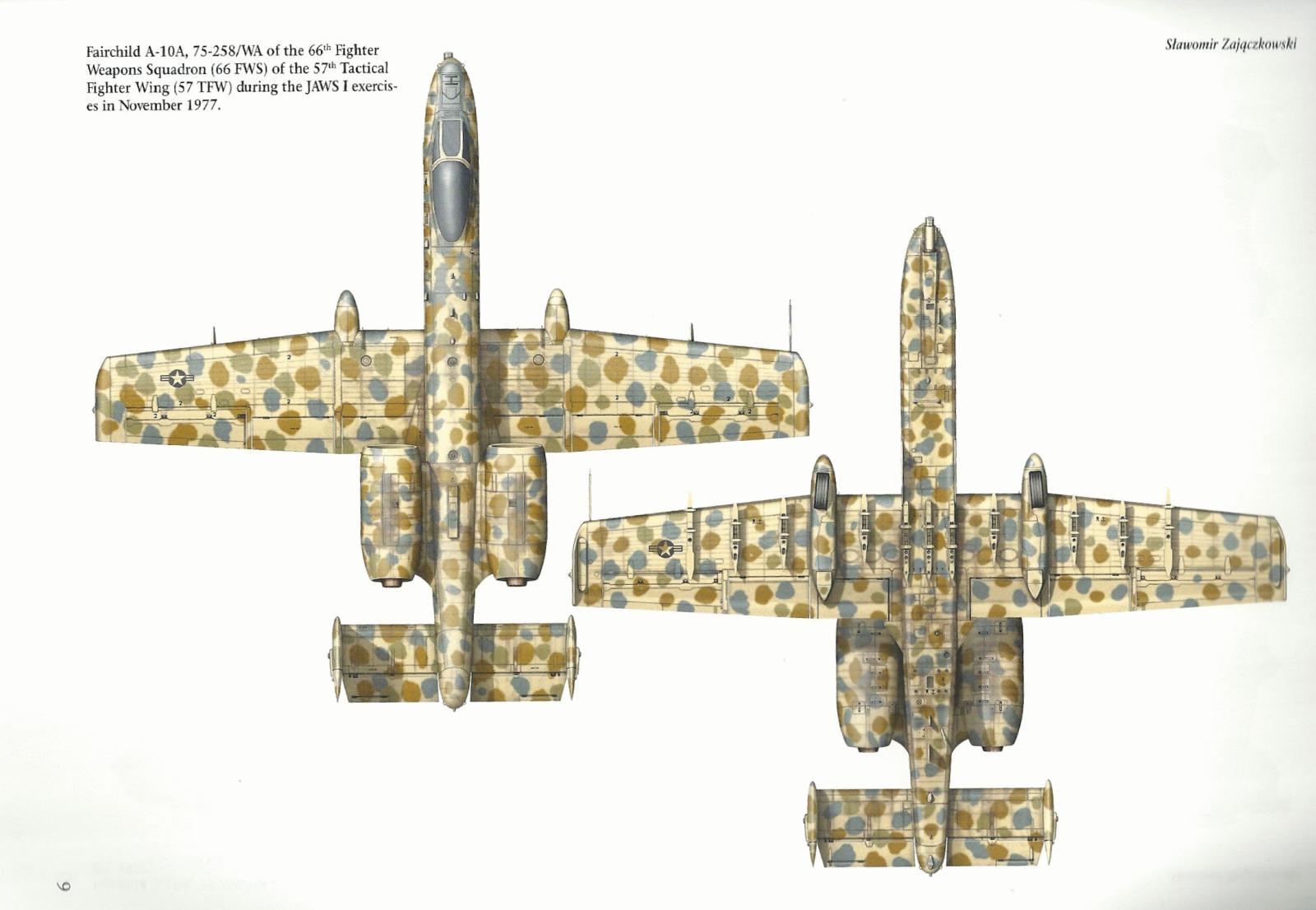 The book covers camouflage schemes from the late ‘70s (early production) to the ‘90s (Desert Storm). I am not sure if the book includes all and every type of camo scheme used by the Thunderbolt II, but it certainly has a significant selection.