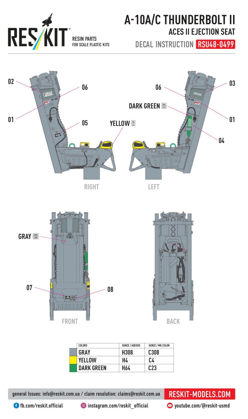 ResKit has provided the IPMS reviewer corps with a new 3D resin printed Aces II ejection seat for the A-10A/C Thunderbolt II in 1/48th scale.
