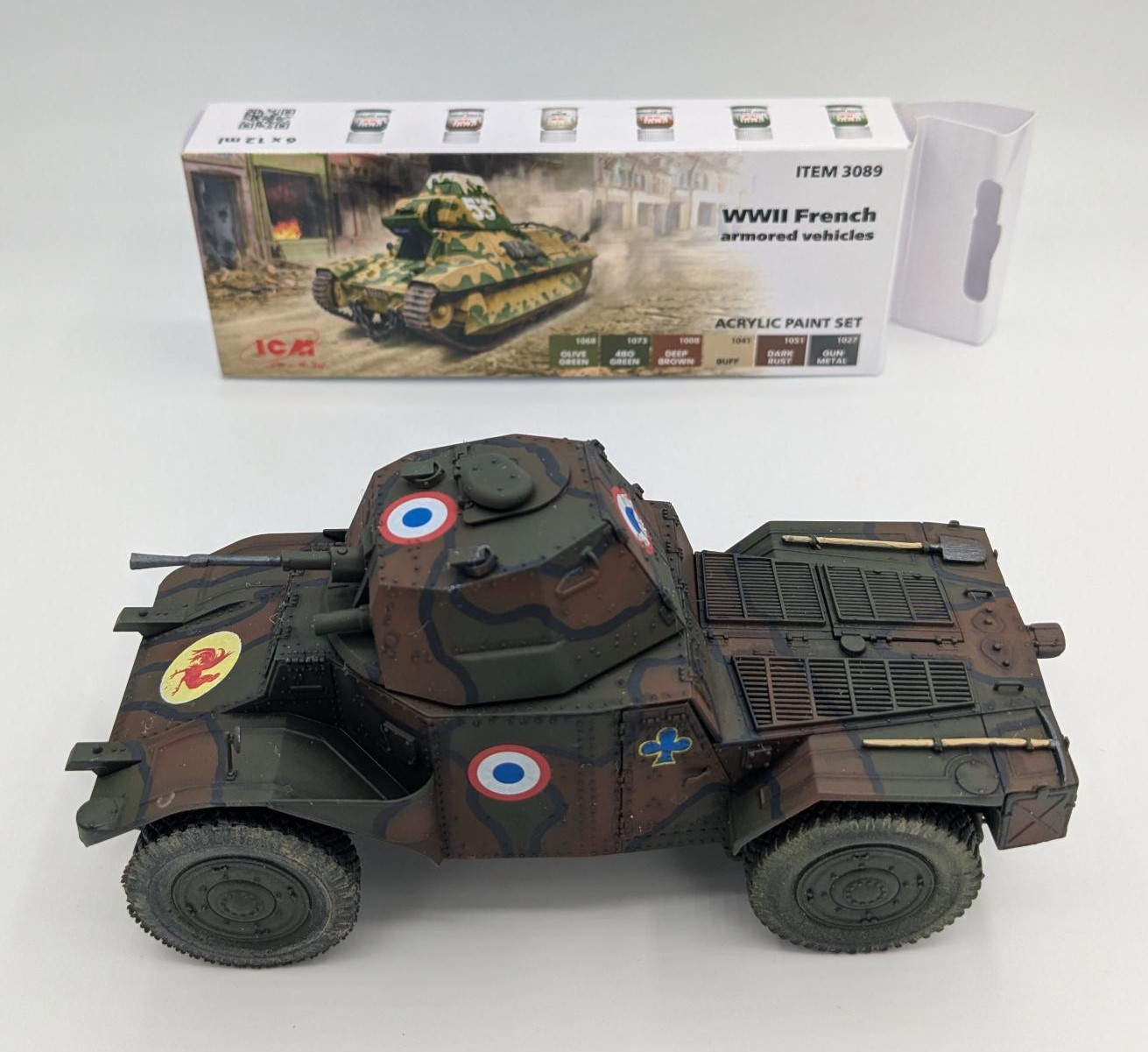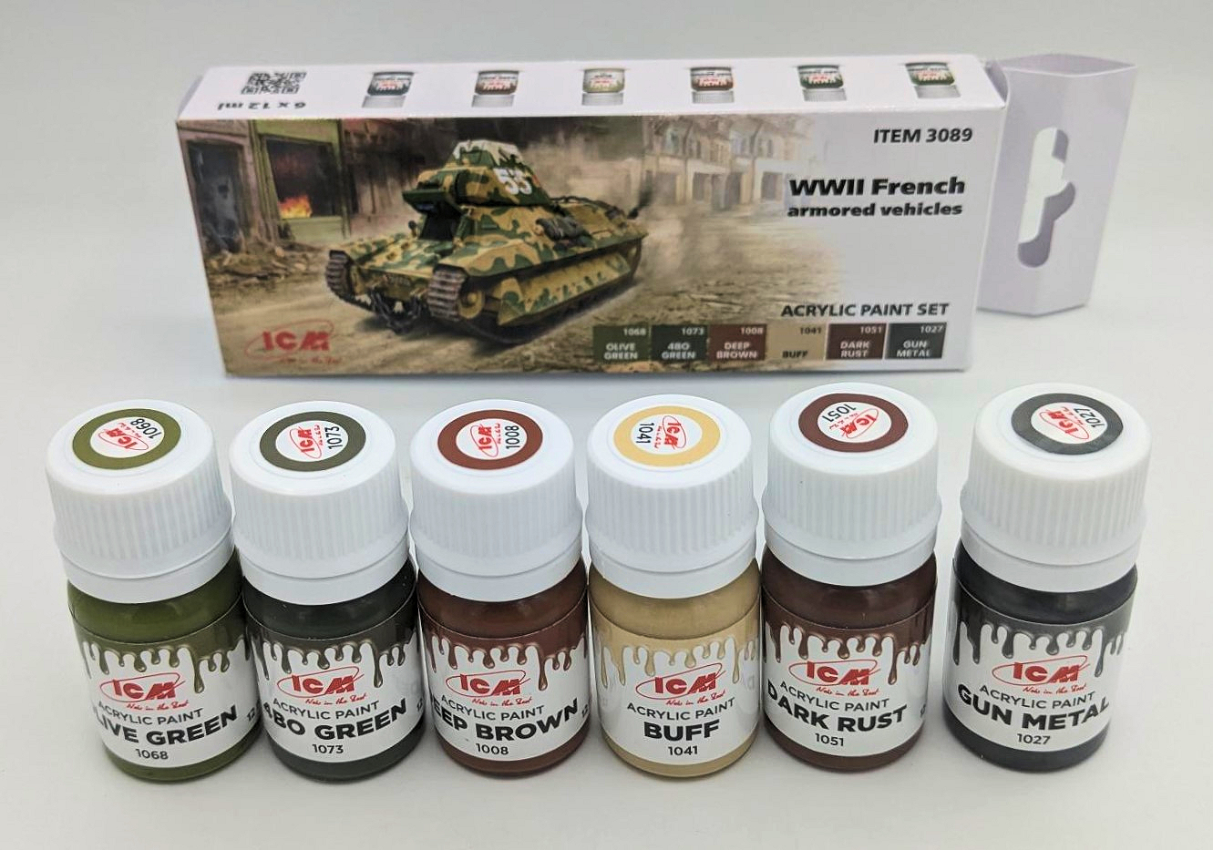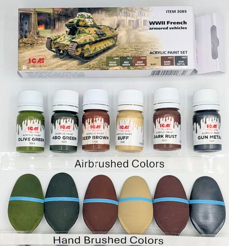 This is a good, one-stop acrylic paint set for WWII French armored vehicles. This is good paint for figures as brush marks disappear, and the paints are sturdy and dry matte.