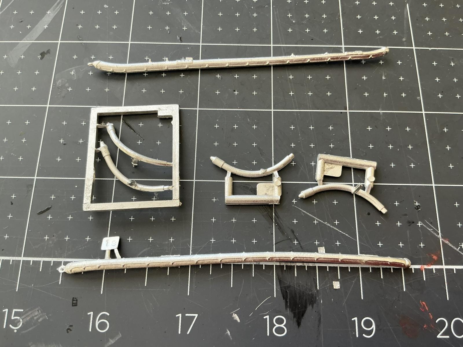 This kit is a direct replacement of parts for the Trumpeter Super Cobra. The parts have some very nice details on them. They were also well contained in the packaging, resulting in them arriving without even the long skids being bent. The overall level of cleanup is very minimal, and the molds are set along the designed weld lines or oriented with elements of the skids or supports so they don’t require cleanup. For instance, on the skid mount, the parting line on the white metal matches a weld line on the full-size component, so no cleanup was required due to the minimal flash present. I applied some white primer to help show the lines of the SAC gear so that the detail was more evident in the picture.