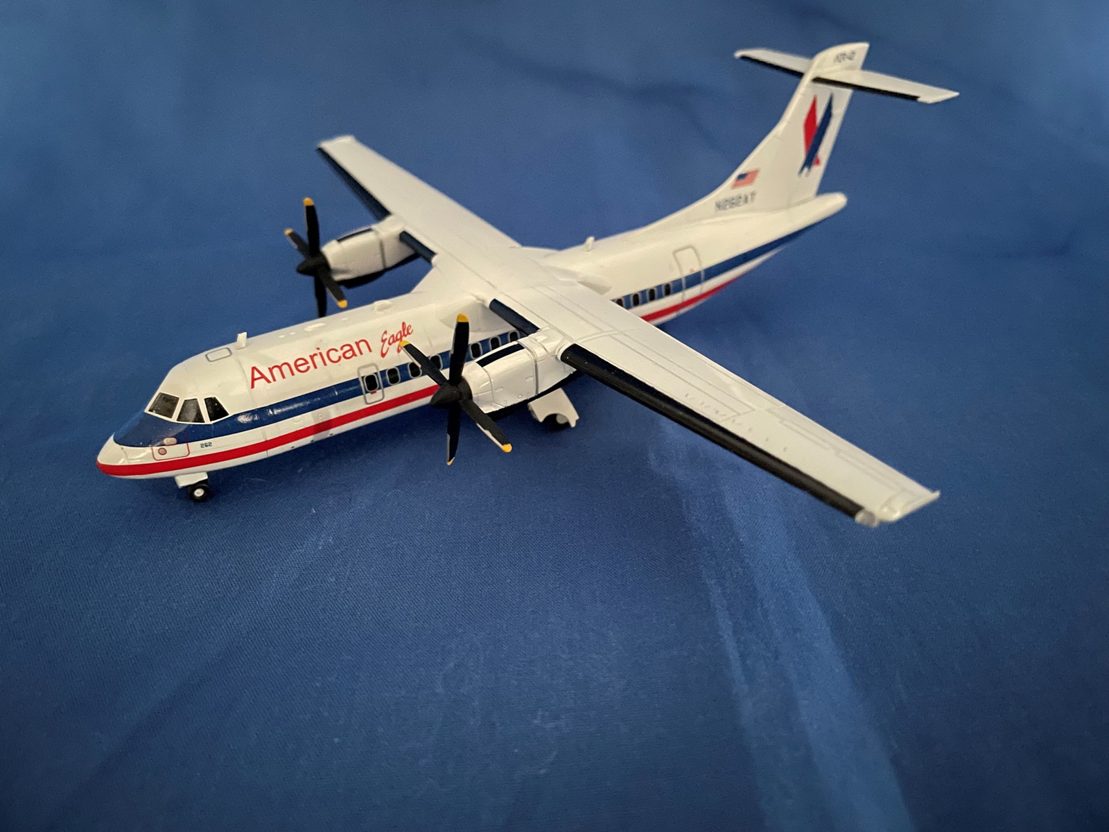 X-Scale Models, from Ukraine, has now released its latest model kit in 1/144 scale with an American Eagle ATR-42-300 that served out of Chicago’s O’Hare airport. X-Scale also included a date of 1996. The subject aircraft in this box, currently flies for Fed Ex.