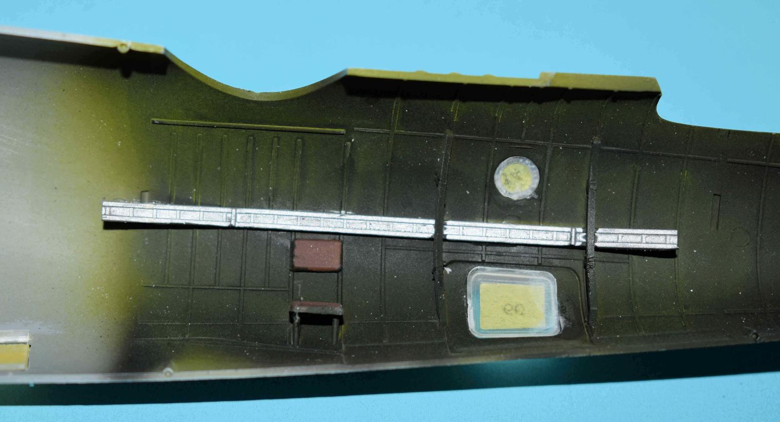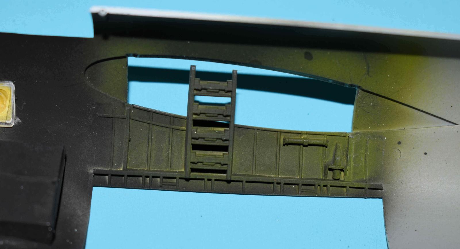 ICM construction as well as Monograms started with the fuselage and cockpit. For Flak bait, you will need to cut out two additional windows in the bottom of the fuselage. Theya re marked but take your time and cut well or fill and sand later. The detail in the molding is years apart (about 45 total) and shows with much, much finer detail in the ICM kits. ICM has a full interior, most of which will not be seen when complete. I elected to open he bomb bay on Hard to Get and close the rest. The bomb bay on the ICM kit comprises the bulk heads that hold the wings so alignment is key. The Monogram kit is far less detailed. ICM shows the difference in modern molding technology in the cockpit too as their seats are finely molded in multi parts and detailed. Monograms seat looks like a recliner and have a pilot figure included but it’s not good.