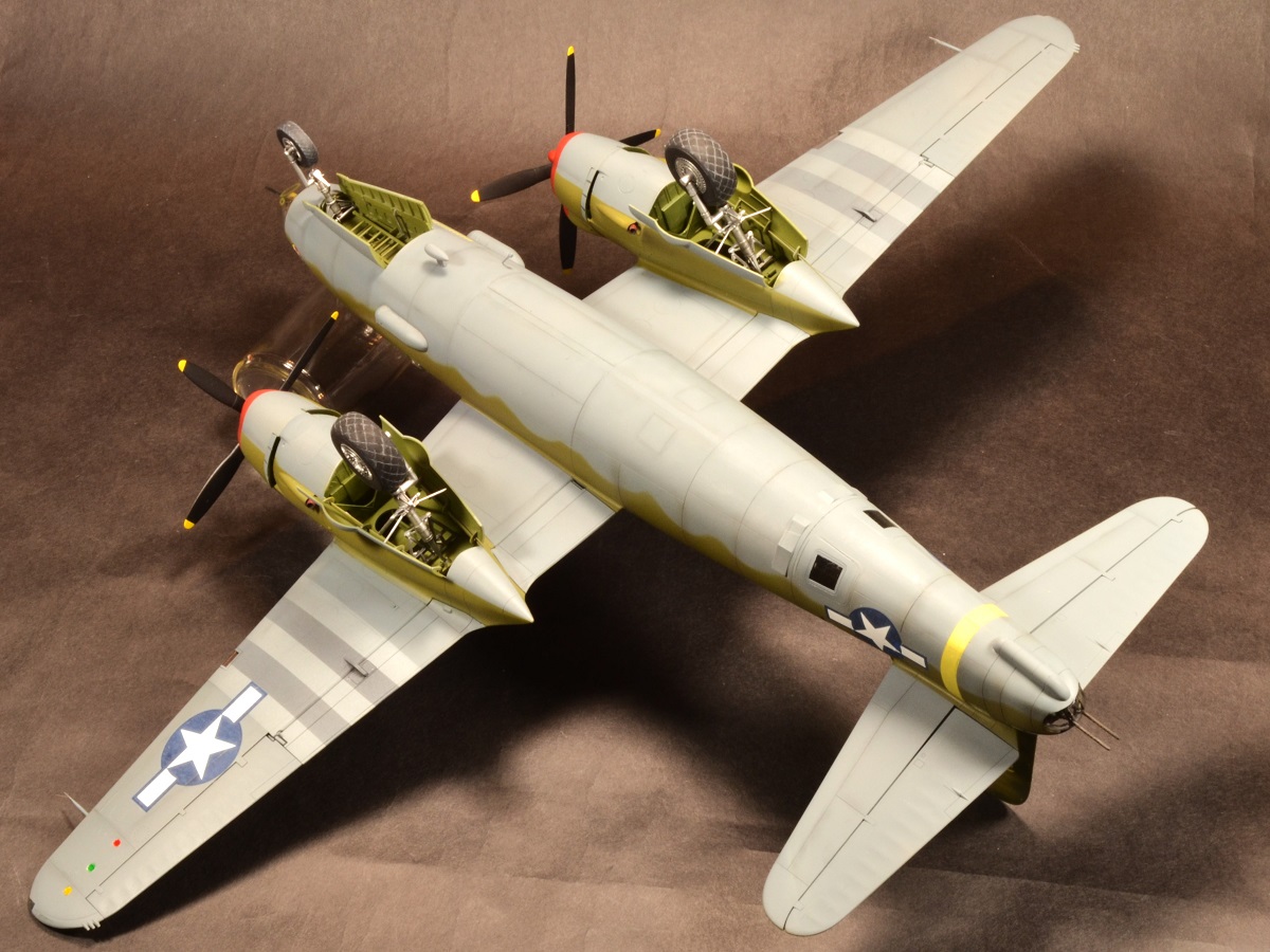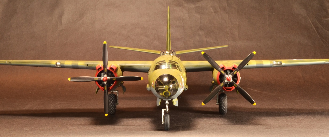 Finally, I installed the landing gear & doors, nose canopy, and propellers and considered it done.