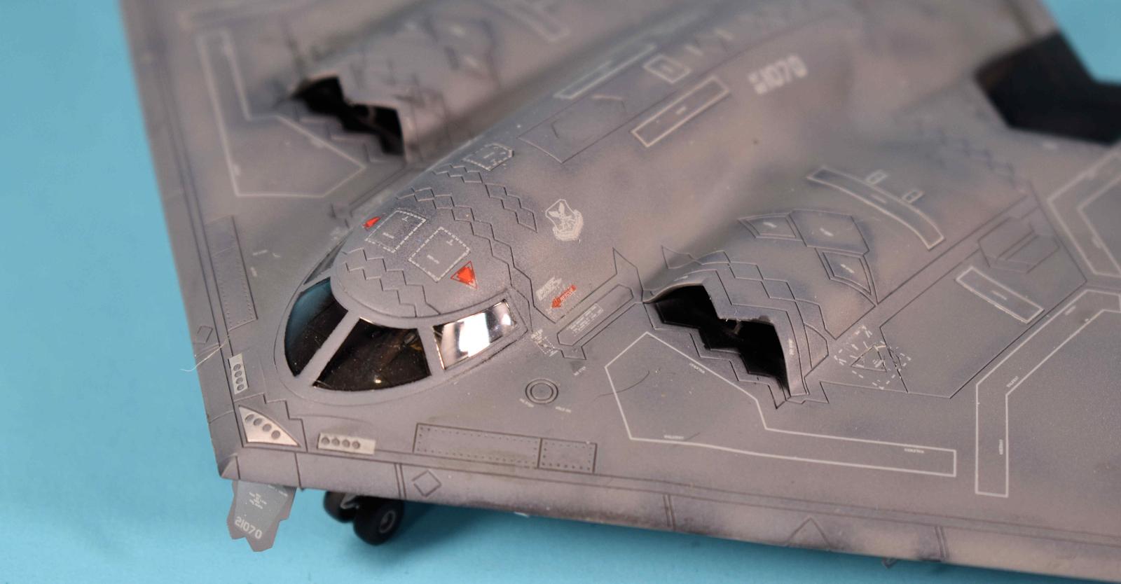 Academy’s newest kit is a wonderful version of the B-2A Spirit in 1/144 scale. This is a great scale for this aircraft as it is a large plane. Looking inside the box, you will find four perfectly crisp gray sprues with no flash and minimal mold lines. One clear sprue is included and also a precut masking set for the canopy and a large decal sheet. Markings and stencils are included for a single plane with five choices: