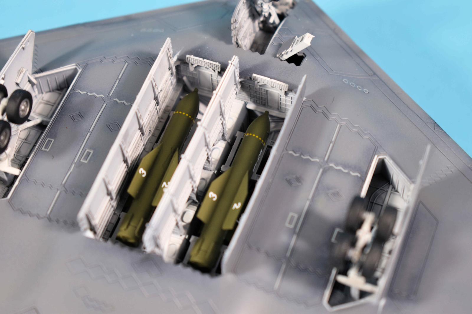 Next, you can decide a flying B-2 or parked as you can pose the bomb bay and wells open or in flying position. I wanted mine on the ground so the bomb bay is assembled and you have three choices: