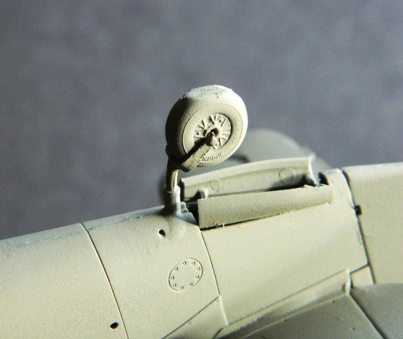 I recommend that you install the gear on the door and paint it separately before installation as this makes for a sturdier glue joint, and can be accomplished after painting the plane itself. Once finished, slip the gear in with a bit of CA glue, and you are done. As a bit of a confession, the fit is so good that I did not need to glue the main gear into their sockets.