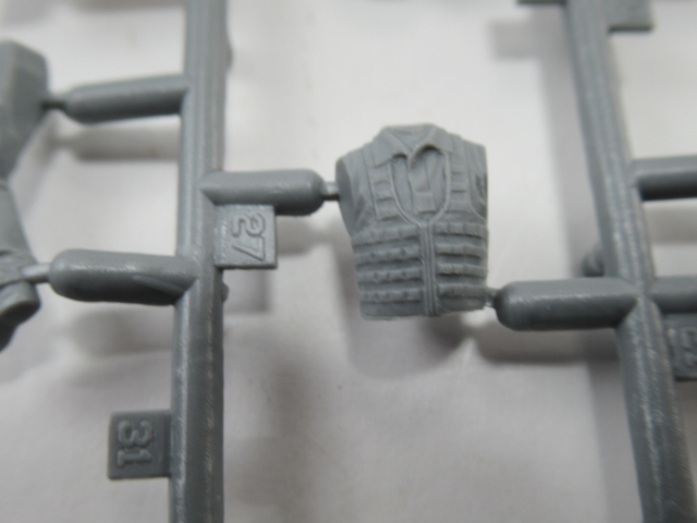 Packaged in a really sturdy top opening cardboard box with the artwork on a sleeve that fits over it protects the entire contents from anything short of fire or a trash compactor. Inside you’ll find a single sprue of light grey plastic that contains 32 beautiful parts for THREE figures.