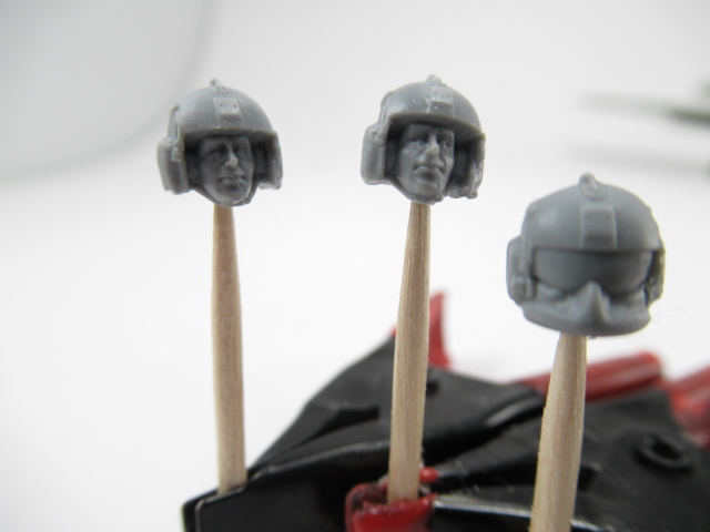 The cool thing about the crew chief is the maxillofacial shield (MFS) which can be painted up in a number of cool ways. This is the first time that I know of, that the MFS is made available in 1/48 scale. The faces of the pilots are quite well proportioned and will look great with their HGU-56 helmets.