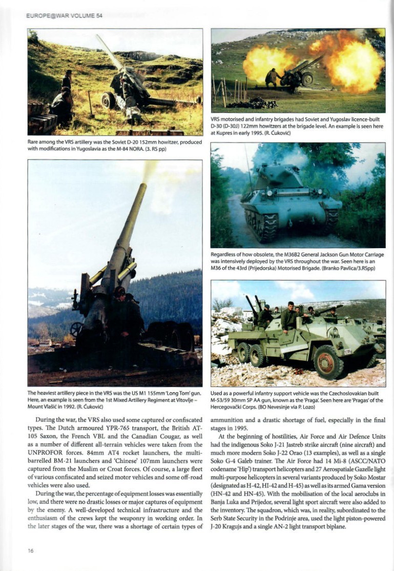 This book excels in its photographs and modelers and historians will not be disappointed. There are a lot of details in the modern color photographs. One of the key things we experienced was the lack of helmets worn by the combatants. It was largely the lack of discipline with the front-line units, who often worked in shifts. The uniforms provide great references for figure painters and modelers for vignettes and dioramas. Model builders will not be disappointed. Yugoslavia was supplied by both the Warsaw Pact and western countries, primarily America after World War II. Armored fighting vehicles, tanks and supporting vehicles include BRDM-2, BMP M-80 (based on the Soviet BMP), indigenous M-60 APC, T-34/85 (designated the T-34B), T-55 (both Polish and Czech), T-72, Yugoslav M-84, Czech M-53/59 SPG known as the ‘Praga’, multiple variants of the TAM light truck, American M18 Hellcat, M36B2 Jackson, and a whole host of makeshift ‘do-it-yourself’ armored vehicles. Artillery runs the gambit from WWII Soviet field pieces to the 9K52 Luna (Frog-7).