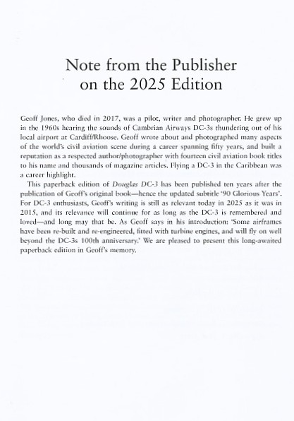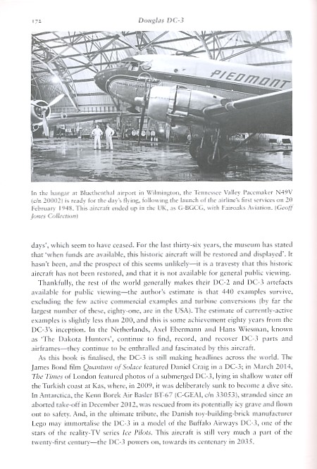 Geoff Jones was a pilot and author with a passion for the DC-3 and this shows in his writing. The book starts with a potted history of the origins of the type, the state of US airlines in the early Thirties that led to the Douglas Commercial series, and discussion of some of the personalities involved.