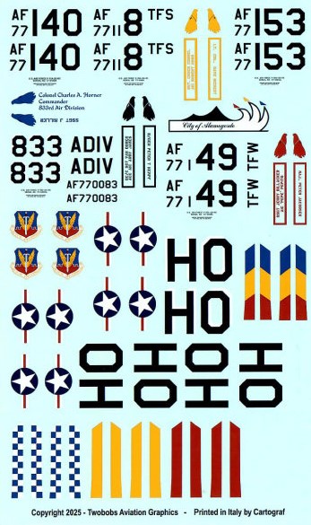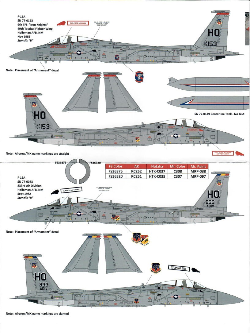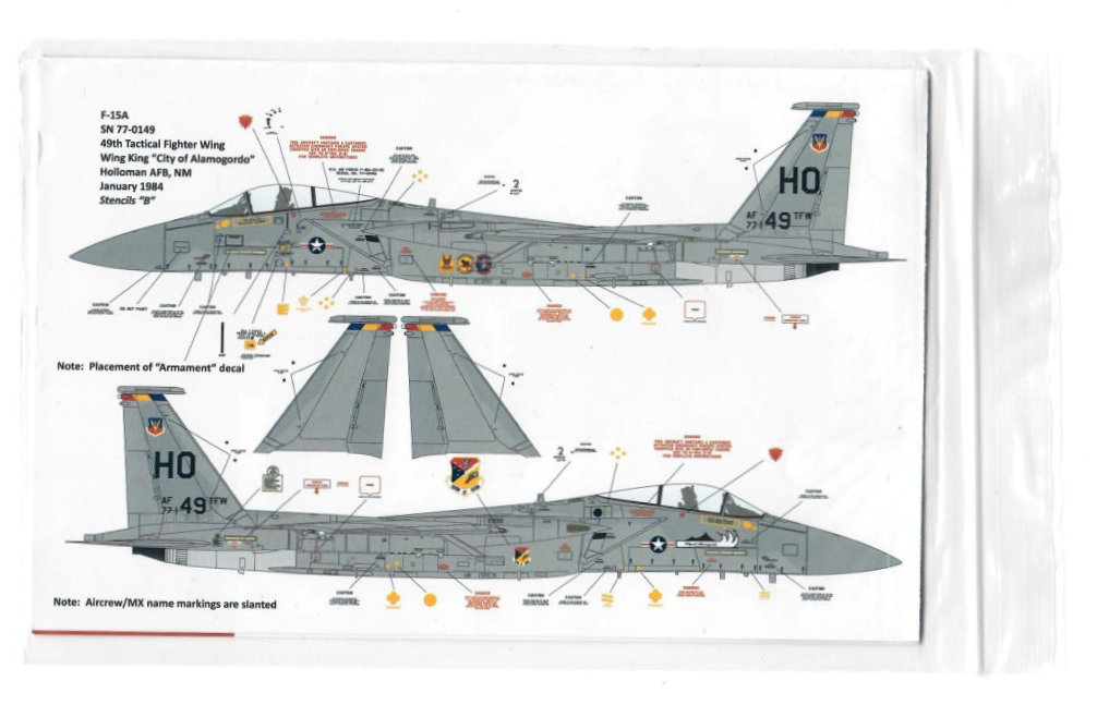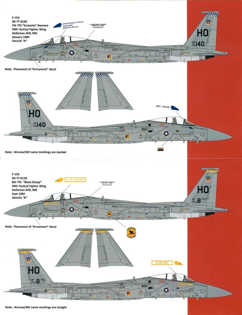 The 49th Fighter Wing has a long and storied history, as does it home base, Holloman AFB, outside Alamogordo, New Mexico. Included in this decal set are two stencil sets and markings for five F-15As from the 1980s: