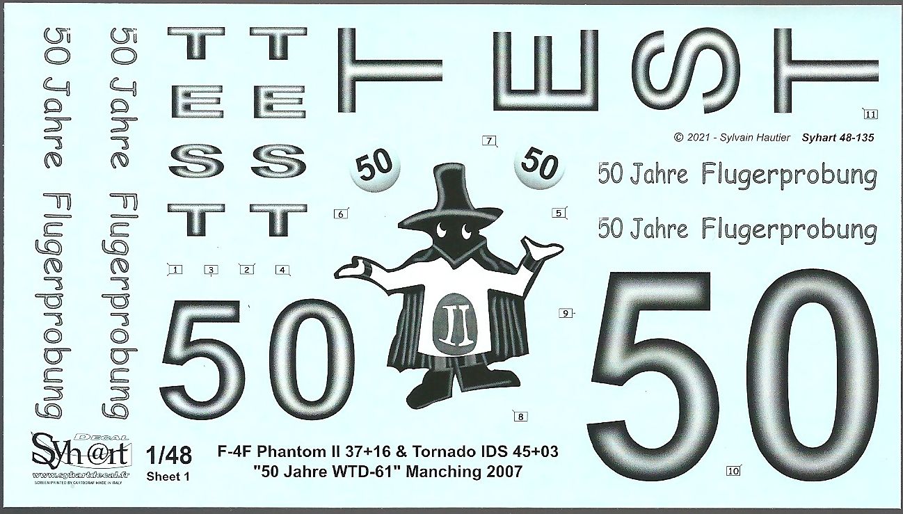 Shyhart Decals has released a decal sheet for a commemorative scheme flown by an F-4F and a Tornado in 2007, celebrating the 50 years of the aeronautical research institute of the German Air Force.