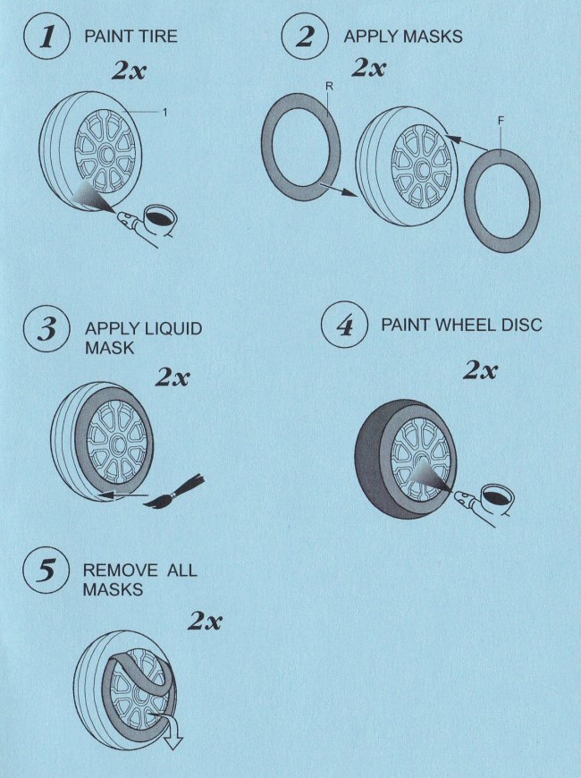 Aires masks provide the option of painting the tire and then the hub or the hub and then the tire. The wheel masks are in vinyl and not like the masking tape variety – with proper care you should be able to reuse the masks on several sets of wheels. A quick check shows a good fit.
