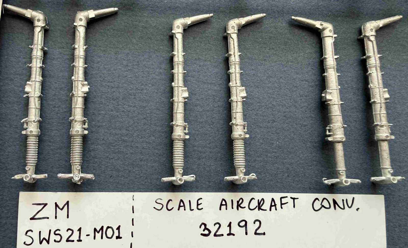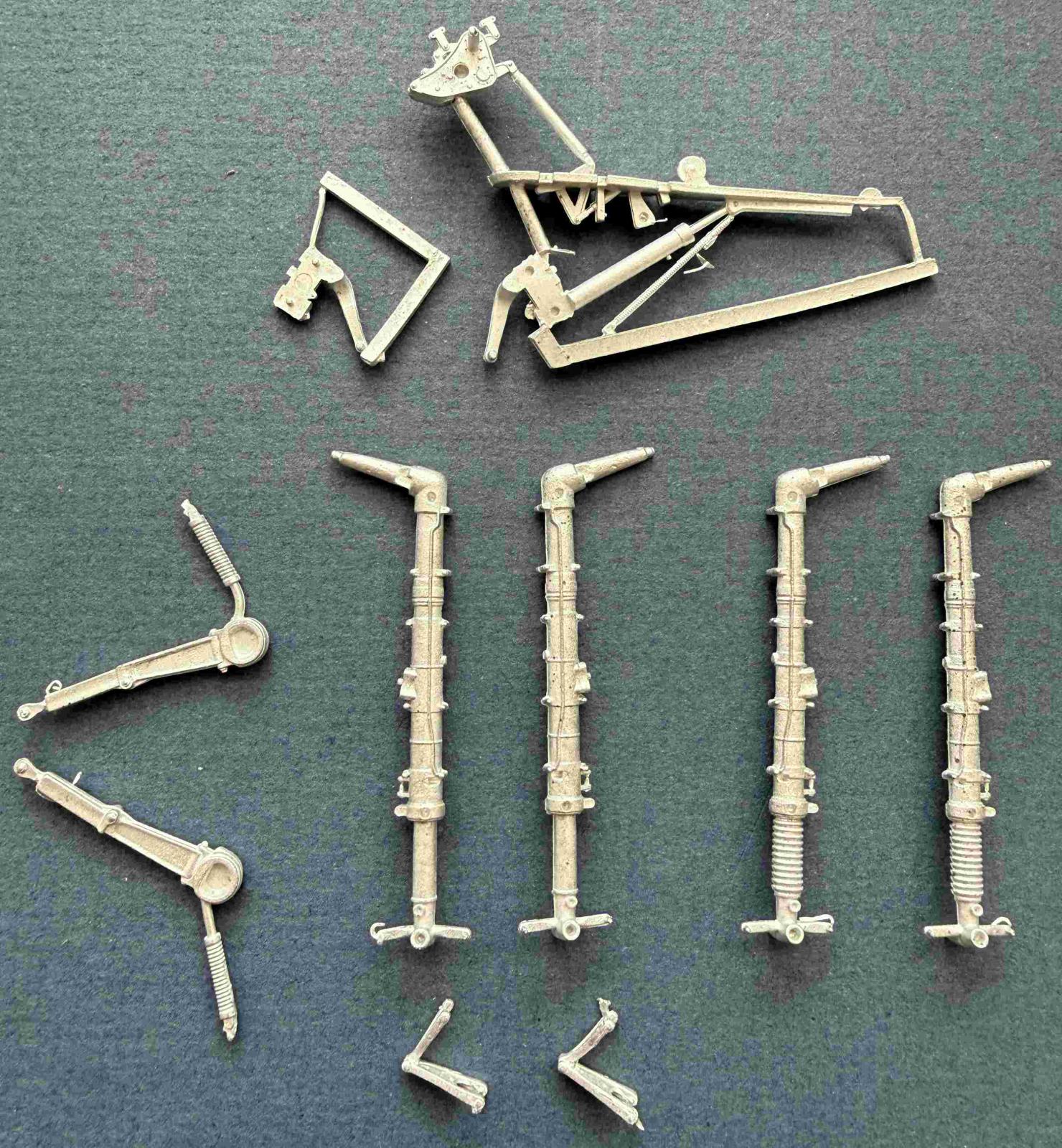 We manufacture a line of white metal landing gear for 1/18 to 1/144 scale aircraft. Some Sets consist of the main gear only, while others include the nose gear, tail gear and/or adjacent related components. Some inaccuracies in the original kit gear have been corrected, but the mounting points remain identical to the factory parts. With numerous sets, we have not sought to duplicate non-load-bearing component parts where the factory plastic parts are reasonably accurate.