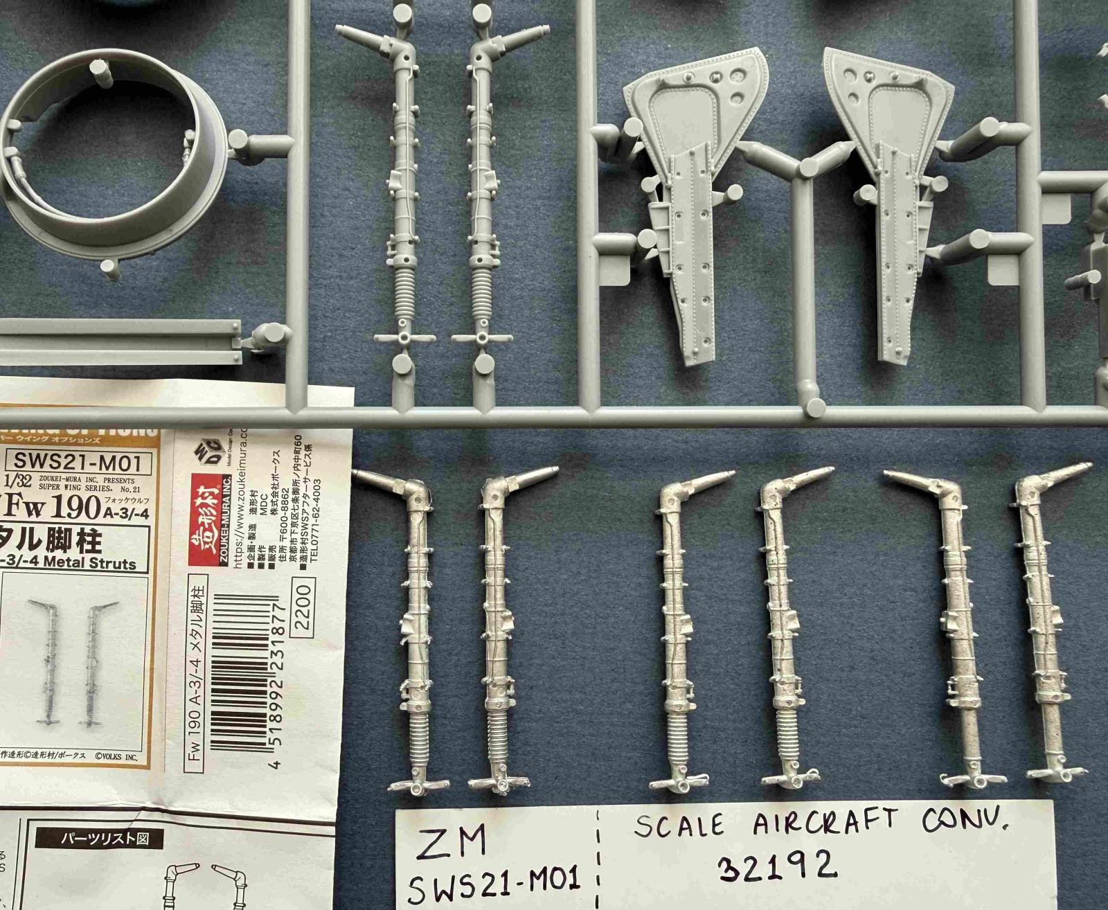 The Scale Aircraft Conversions set for Zoukei-Mura’s Focke Wulf Fw-190A kits offers a competitive aftermarket option and advantages. One set of struts in my sample had two identical left struts instead of one for the left and one for the right wheel, respectively, and a few elements were slightly bent, although that last issue can be fairly easily fixed. A small plastic bag to hold the parts inside the blister pack might protect them from getting bent. I contacted customer service for the replacement of the duplicate strut and expect it to be corrected by the manufacturer. Despite the minor shortcomings above, I recommend this set to modelers as it offers some advantages over plastic parts.