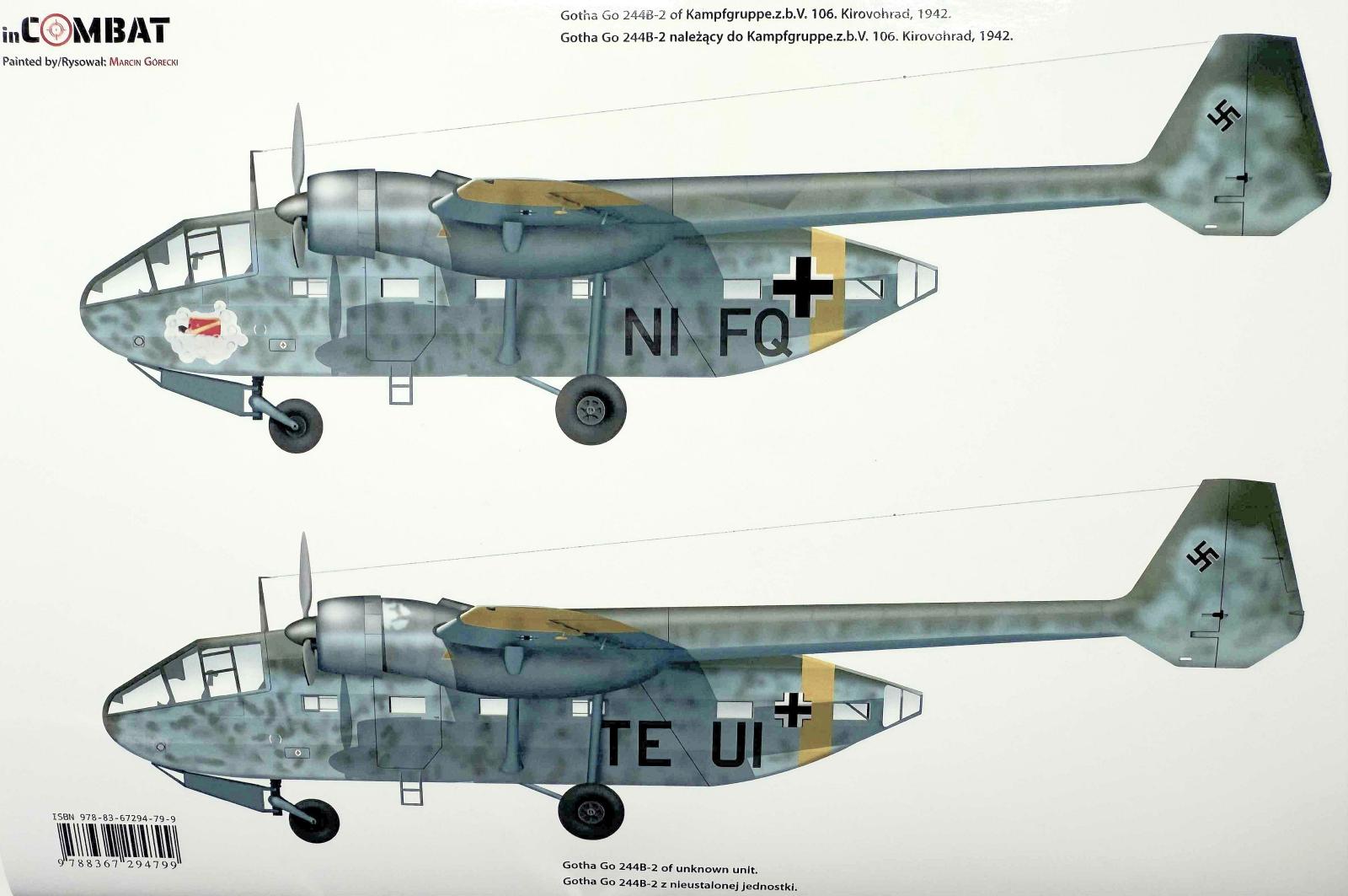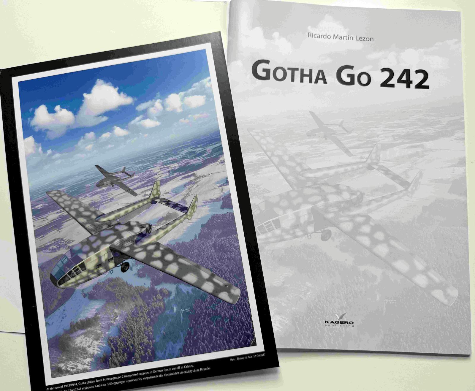 The book “Gotha Go 242/244” from Kagero publishing delivers a wealth of information within its 57 pages. It provides a free poster displaying two Gotha gliders flying over a winter landscape during the transport of supplies to besieged German forces in Crimea in 1943/1944. The poster fits inside the book and shows the book’s cover image. The quality of the poster and the color profiles are great.