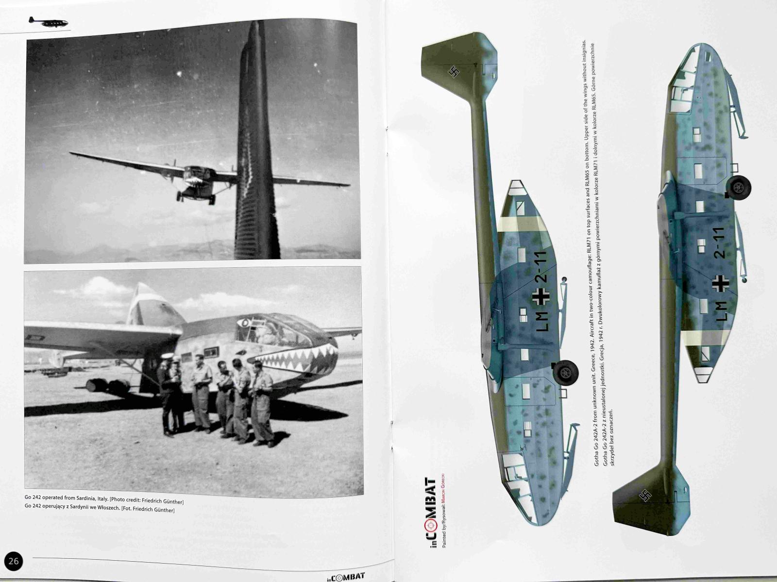 I was nicely surprised by the number of photographs in the book. I happen to have a model of Gotha 242 from IBG Models in 1/72 scale and this publication will be a great companion during assembly and detail presentation. There are several pictures of the cockpit, archival pictures of real aircraft, as well as close-up pictures of the aircraft’s undercarriage and their inside. Ta the end of the book, there are 5 pages from German manual or reference showing structural view, linkage diagrams, and weight specifications, but it is all in German so the reader will have to rely on the German language skills. I found this publication very interesting because of the pictures of these Gotha aircraft in action and brief descriptions of their history. Since I had some experience flying civilian gliders myself during my youth, it was fascinating to see these fairly heavy gliders in a combat environment. I highly recommend this book to aircraft enthusiasts and model builders.