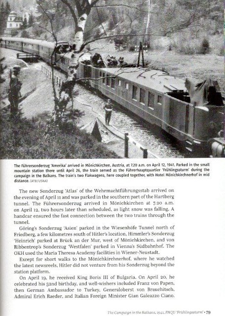 In the section covering the Balkans campaign ‘Frühlingssturm’, I was especially interested in his discussion about the “America”. As the lengthy and fully armored train the Fühersonderzug was described in photographs. Another personal observation: there are many German names and abbreviations used through this book. Having studied German in both high school and university, that allowed me to interpret and better understand the German pronunciations and word.