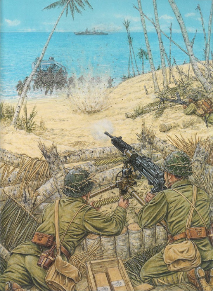 Osprey's 71st book in the Weapon series is a square back soft cover including 80 gloss paper pages. The front cover features a black and white photograph of a 13.2x99 Hotchkiss machine gun introduced in 1930 (from the Royal Armouries collection). The bottom of the front cover features a photograph depicting the predecessor to the Japanese Type 92 machine gun, the Taishio 3rd Year Type machine gun being utilized by the Japanese Navy’s Special Landing Forces. I counted 34 black and white pictures, 38 color photographs, 2 color labeled cut-away illustrations, and 3 color paintings. Adam Hook contributes the three battle-scene color paintings, including two, 2-page spreads. Alan Gilliland provides the labeled color cutaway illustrations of the 8x51mmR Modèle 1900 Hotchkiss gun and the .30-06 Benét-Mercié Machine Rifle M1909.