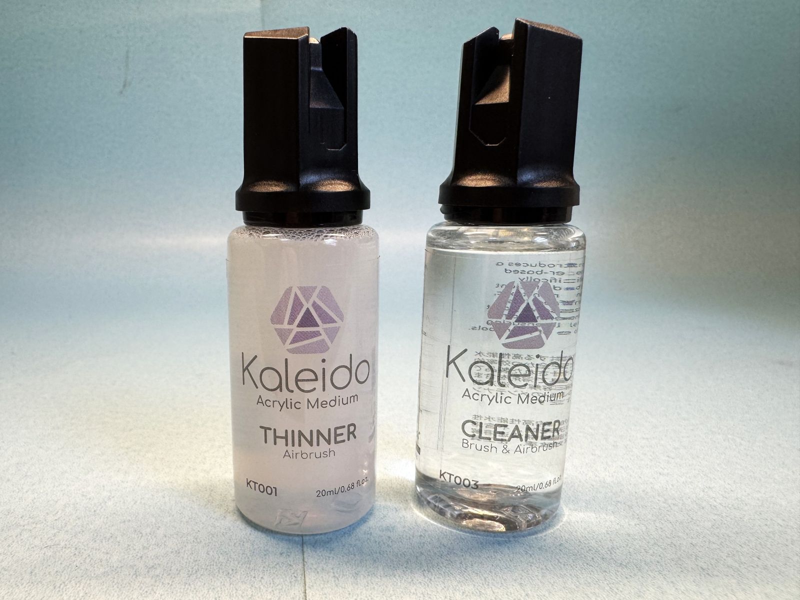 As advertised, the paints sprayed without issue using my Badger Renegade Velocity with a medium needle and nozzle at 20psig. I typically find that acrylic paints advertised for airbrushing need a little thinner to spray properly, but not with the Kaleido ColorWorks paints. I only thinned the Aluminum (3 parts paint to 1 part thinner) for use in my Gaahleri Mobius 0.2mm airbrush, which worked perfectly at 15psig.
