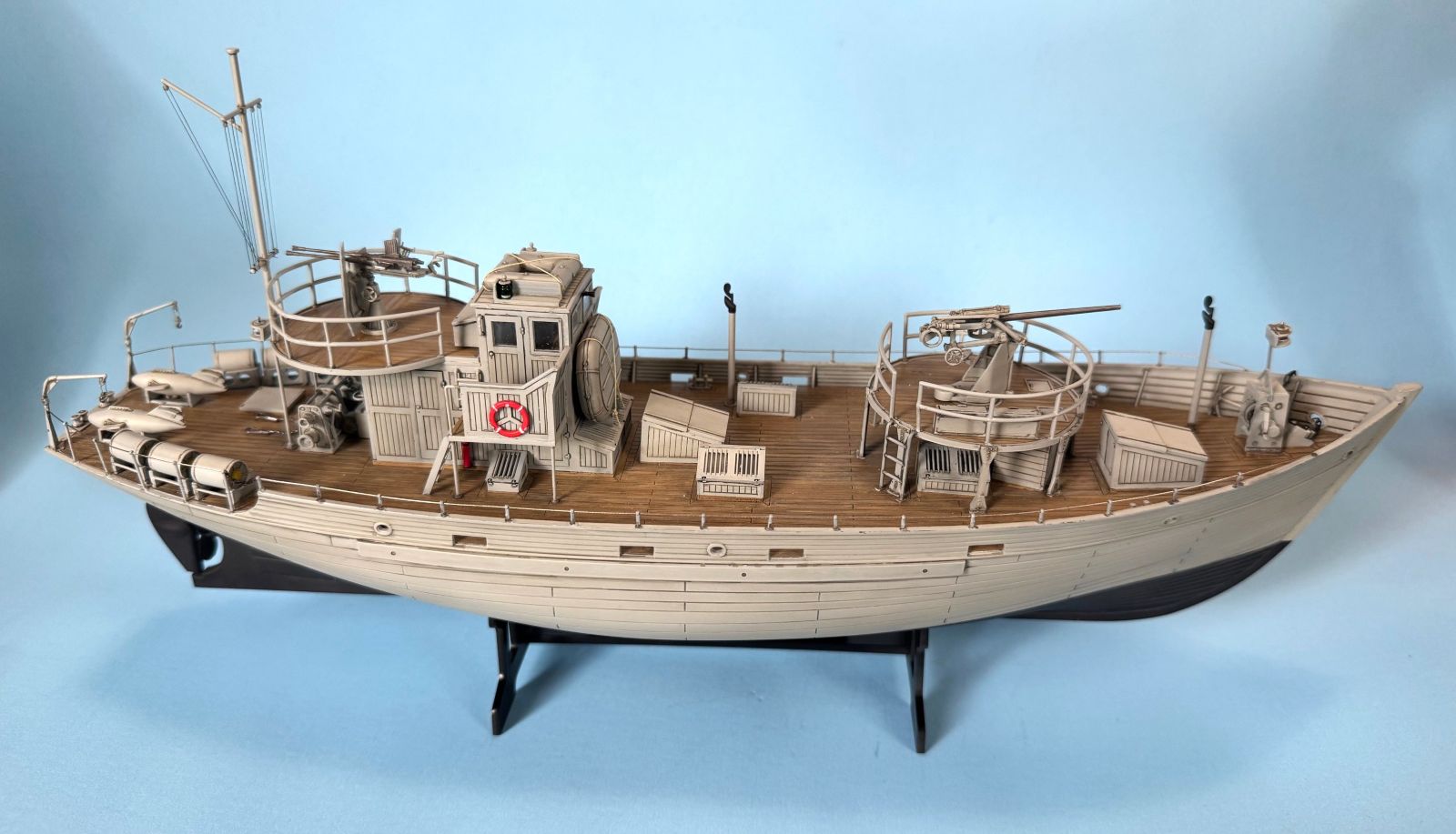 Beginning in 1941, the German Navy (Kriegsmarine) began developing fishing trawlers for various uses in the coastal waters near their occupied lands. Of the 1000 boats ordered, 612 were delivered and of these, 544 saw combat and 135 were lost in combat. These boats were manufactured by different companies in Germany as well as by Sweden and could be constructed of wood, metal, or composite materials. The boats were armed with an assortment of weapons including 20mm and 37mm guns as well as depth charges and could carry acoustic, contact, and magnetic towed sonar to search for enemy submarines. Following the war, many of the surviving boats were transformed into civilian fishing cutters by removing the gun decks and installing a pair of masts.