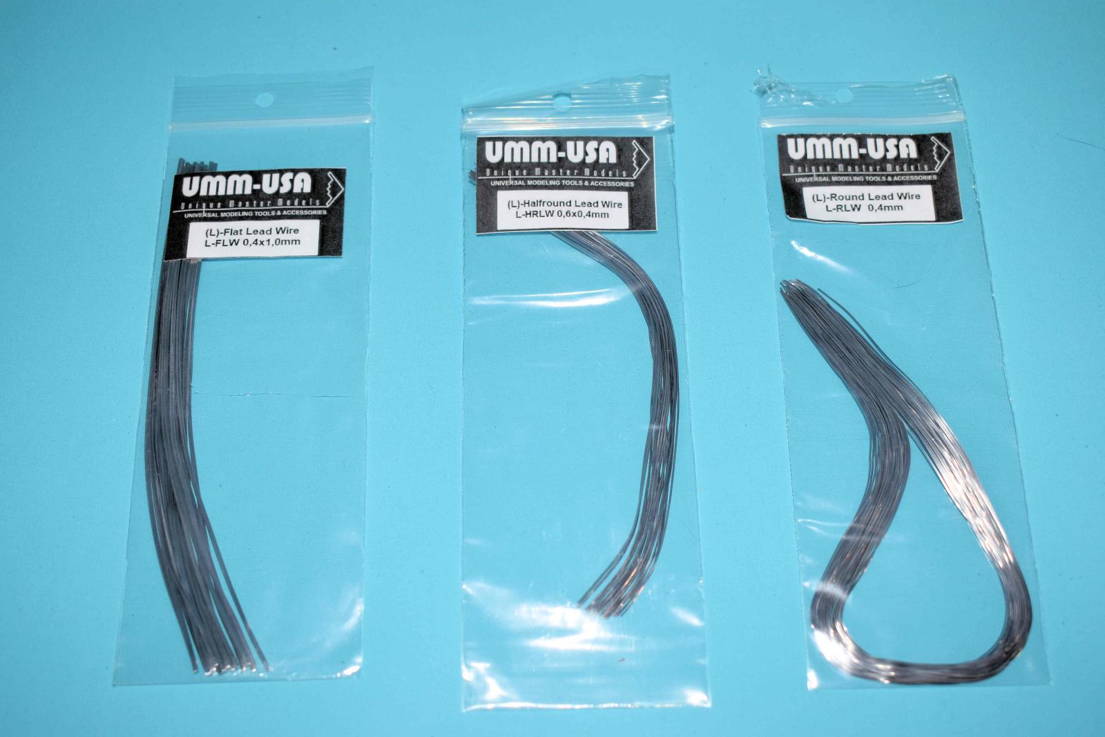 John and UMM-USA have been a godsend for those that like to scratch build by supplying tools and parts to make life easier for all of us as well as giving us access in the US to suppliers not as easily found. This selection is three styles of soft lead wiring perfect for ignition harnesses, wiring jets or anything that might need some kind of wiring or plumbing. The sets come in three types- round 0.4mm, half round and flat at 0.4mm.
