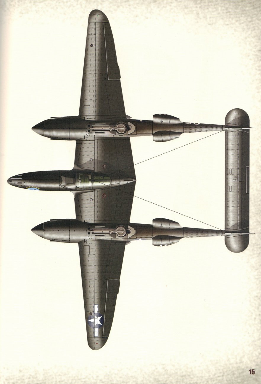 To add icing to the cake, MMPBooks includes a fantastic folded poster, illustrated by Dariusz Karnas. Karnas created a six-view illustration of a P-38L-5 in 1/48th scale. On the reverse side of the poster, also in 1/48th scale, Karnas presents a five-view illustration of a P-38M.
