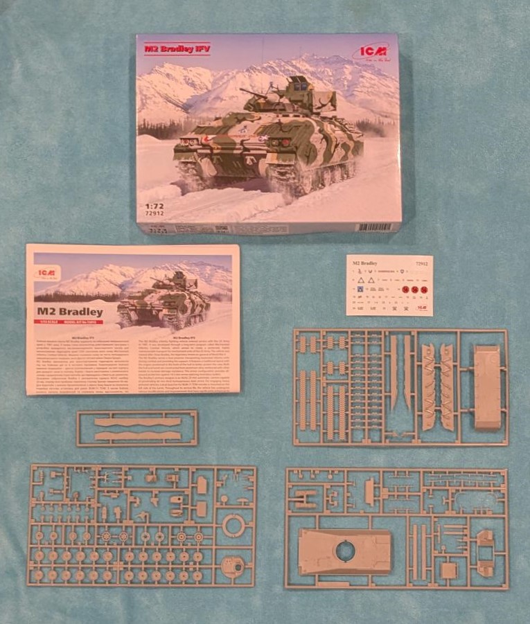 Of note, both the Bradley M2 and M3 kit can be built from this kit as the parts for both are included, and the differences were pointed out in this review. The only difference is the decals included in their respective kits for Infantry (Kit No. 72912) and Cavalry (Kit No. 72913) Fighting Vehicles.