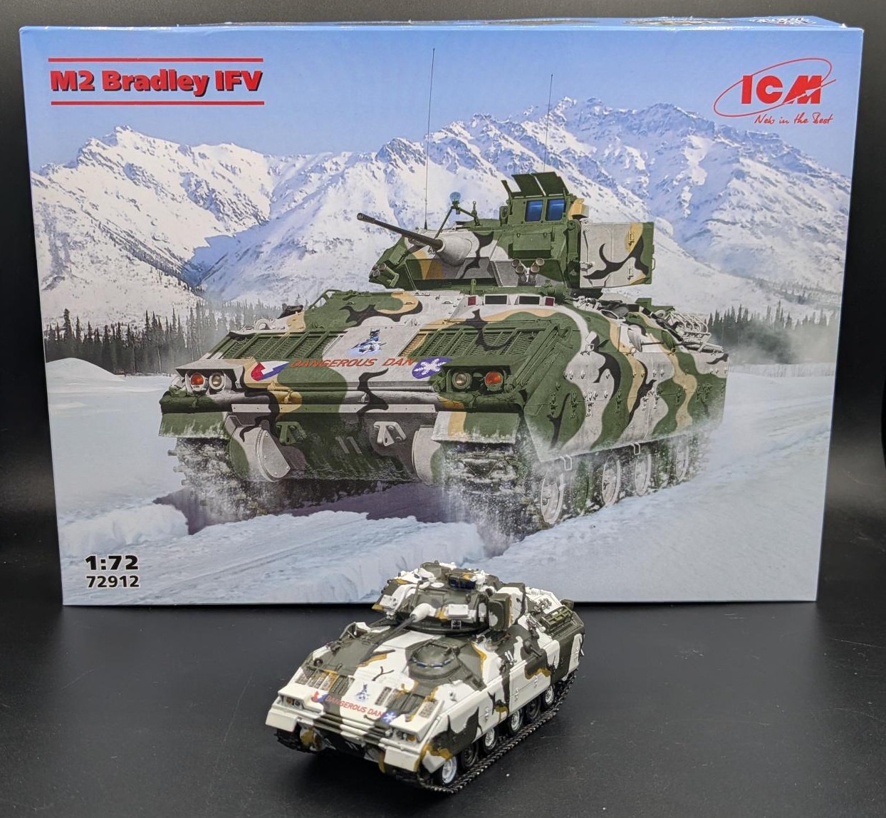 I chose the US Army Cold Regions Test Center, Fort Greely, 1984 as a Bradley in a white MERDC camouflage is not very common and the color decals really pop. ICM conveniently provides Acrylic Paint Set for US Armored Vehicles 1990-2000s (Item No. 3087 - IPMS/USA Review).