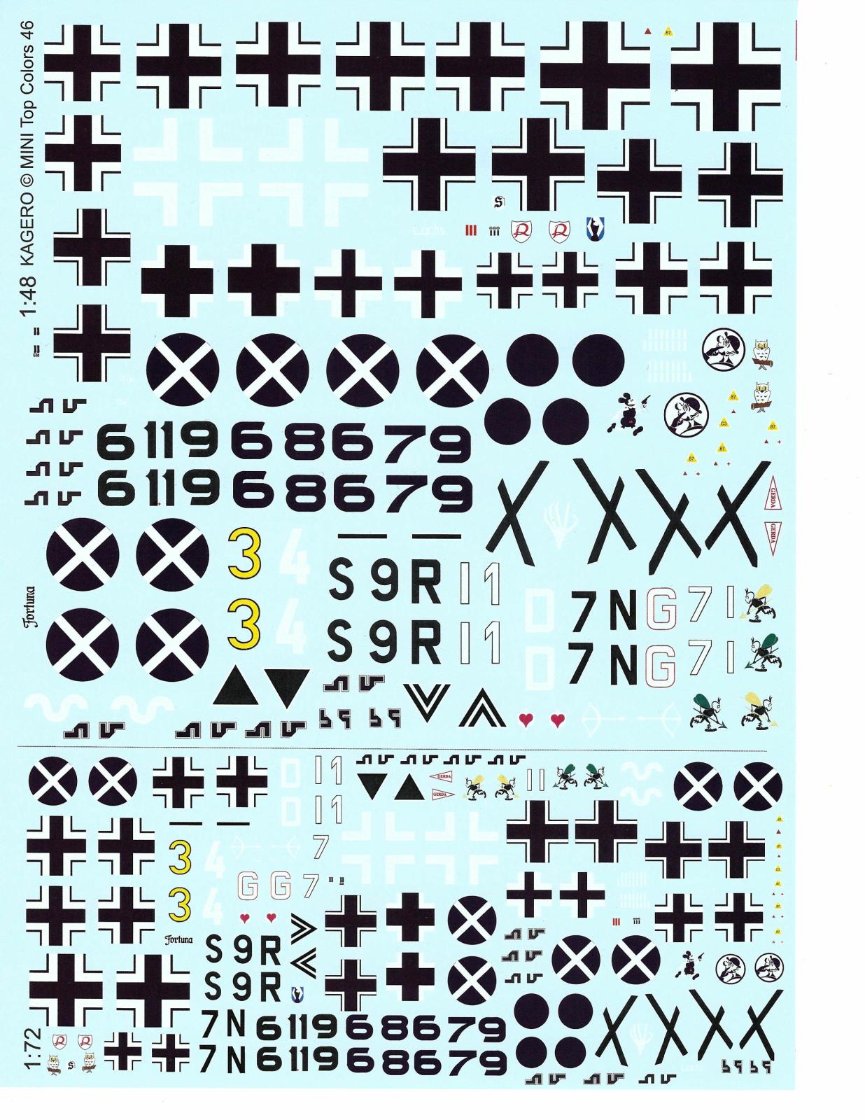 The bonus of Kagero books, especially this one, is a huge decal sheet of ALL the aircraft in the book. Not only in 1/48th but also in 1/72 scale. Everything is in perfect register and looks suitably thin.