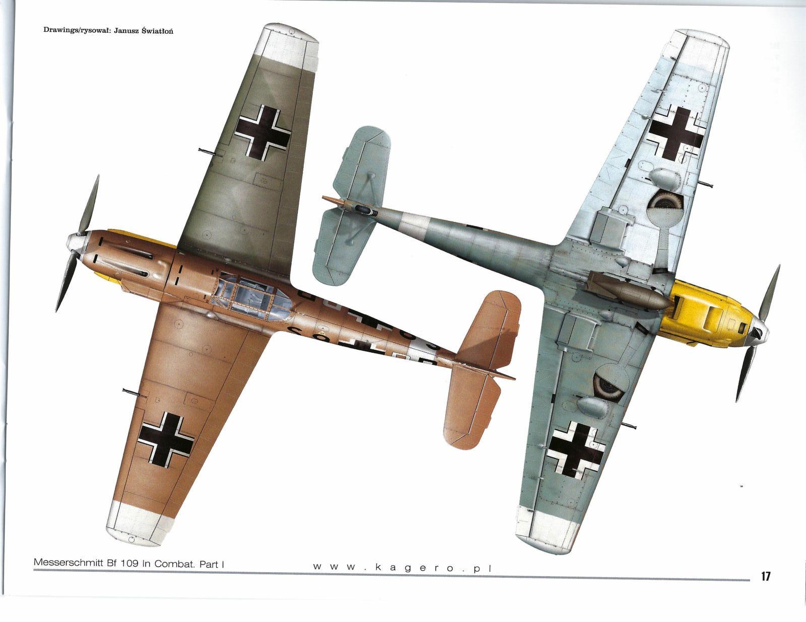 The book comes in a protective sleeve to keep the package safe. This is important because this 8 x 11 book contains 11 full color profiles of various versions of the Messerschmitt. Many of the profiles have four view profiles, but even those that aren’t are quite colorful. There are nine Emils, one Dora and one Friedrich. So, this book focuses on the early versions of the 109. It’s interesting to see the evolution of the markings and camouflage from the Spanish Civil War to the Battle of Britain. My two favorite ones are the desert camouflaged one with different color wings and a Jabo.