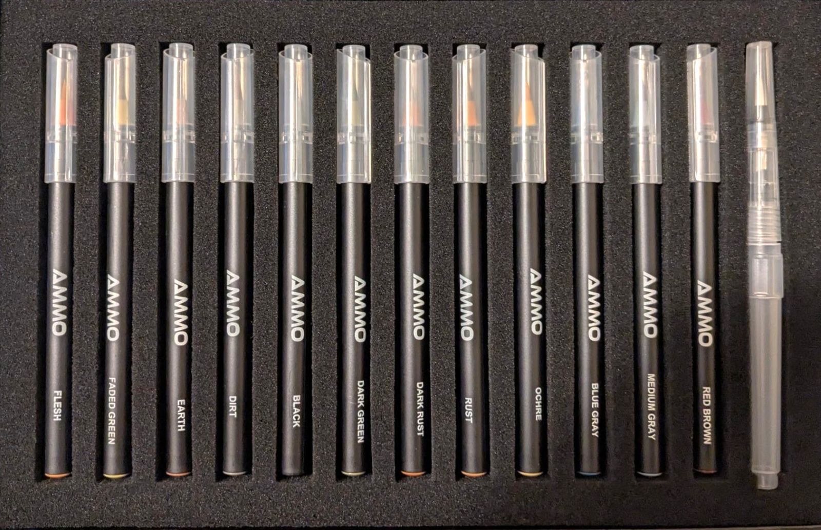 The new brush tip watercolor marker set from AMMO by Mig Jimenez represents an evolution in modeling tools. Designed for precision, versatility, and ease of use. This set of 12 transparent colors has been carefully selected to reproduce realistic effects on military vehicle models. With Missing Link Brush Tip markers, you can apply everything from filters to weathering effects on your models.