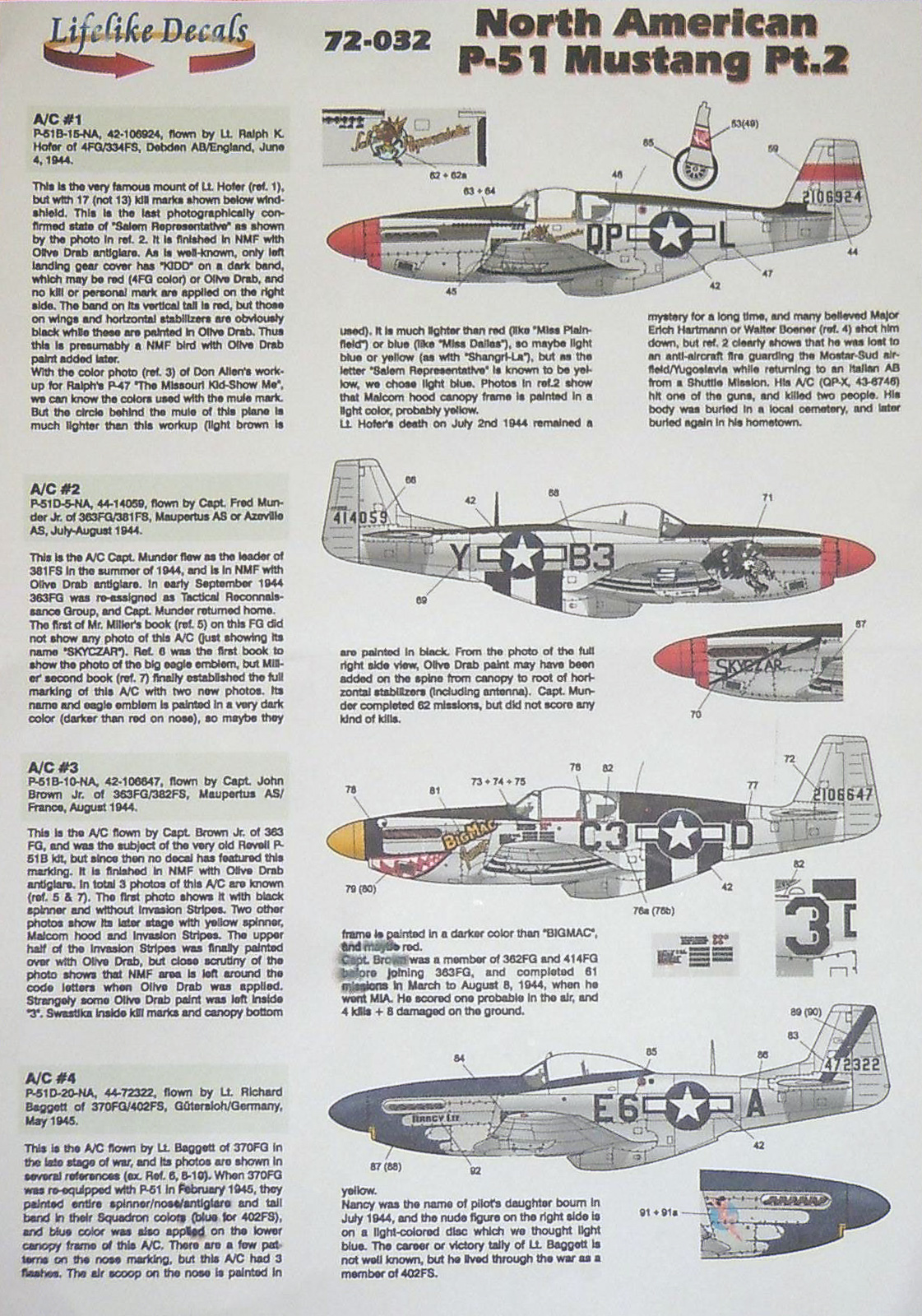 The full-color instructions are nicely done and give the history of each aircraft and the pilots who flew them. References are given for each paint scheme, and where there’s a question as to color Lifelike explains why they specify the color they did, since most of the information was taken from black and white photos.