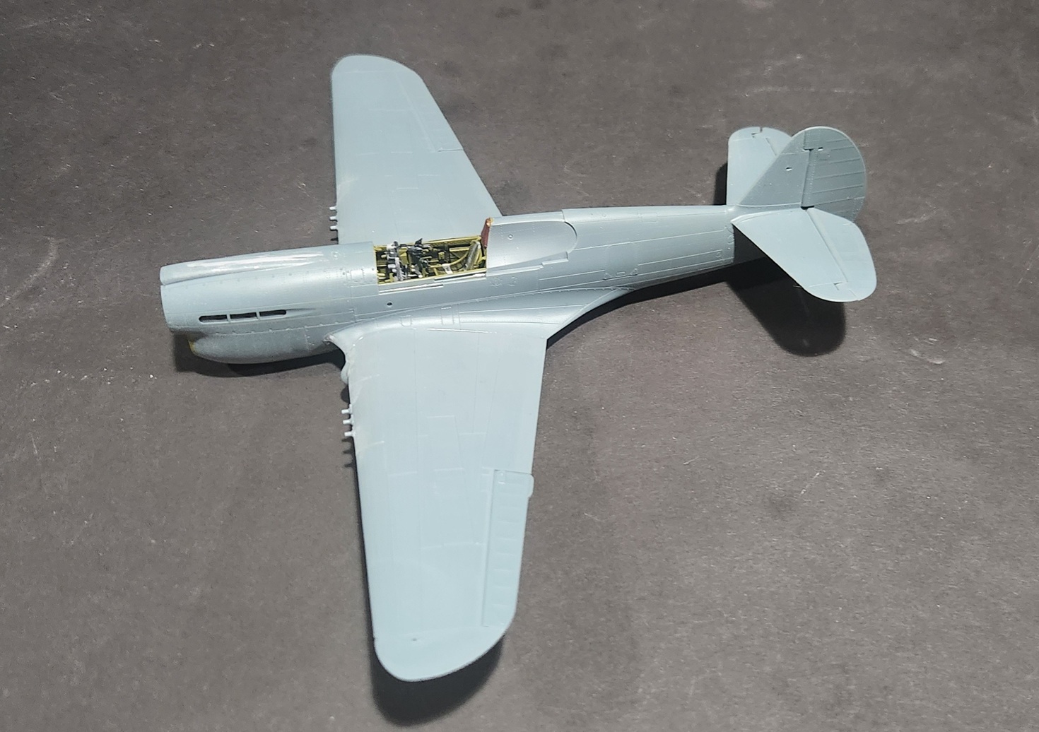 At Step G, you must decide if you want to have open or closed cooling flaps. After building this sub-assembly, the fuselage halves can be married, housing the cockpit in between. The fit was perfect; however, I would encourage test fitting before cementing. There was very little seam line to deal with. Scraping removed almost all of it.