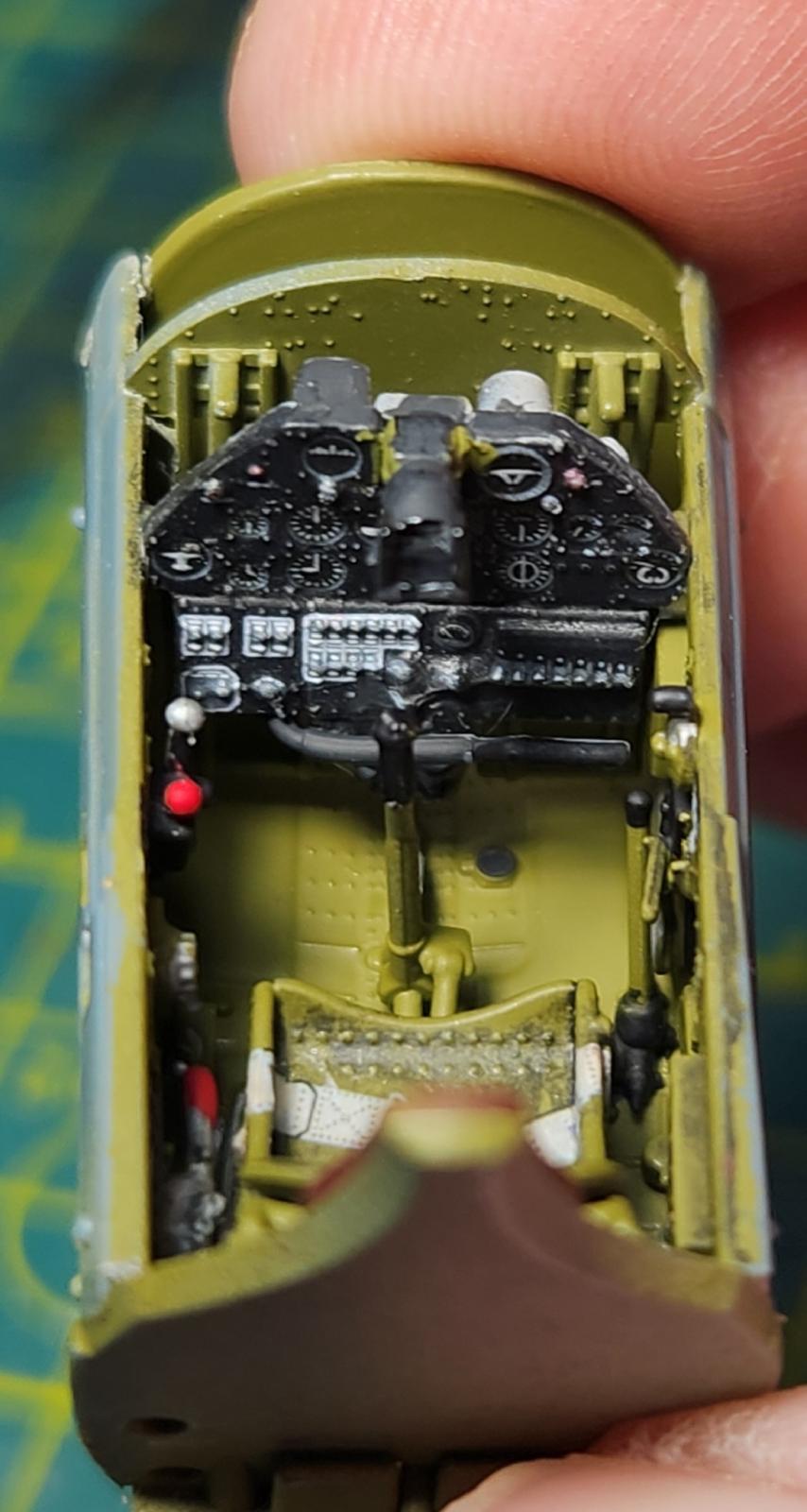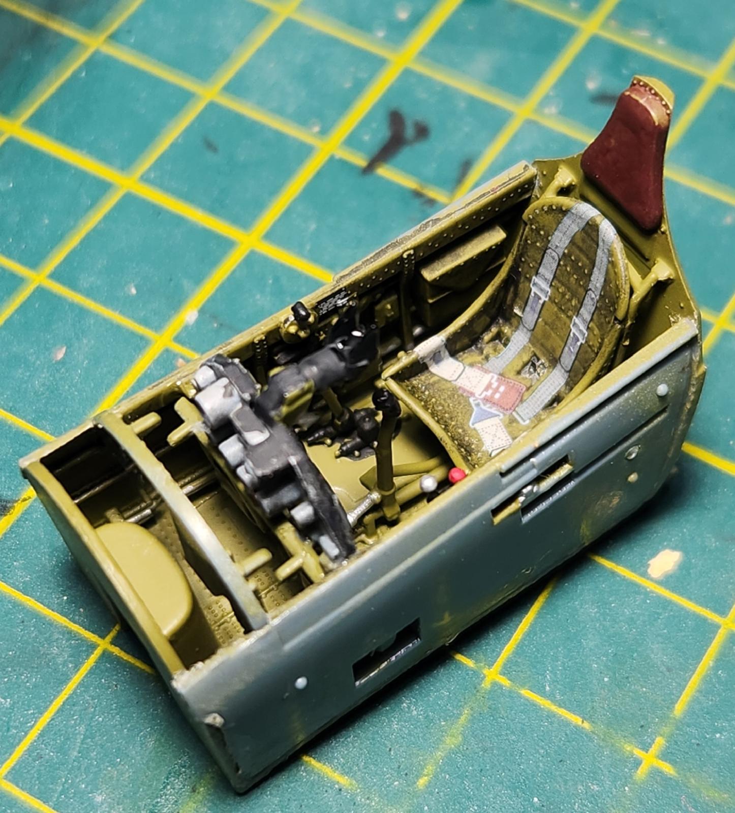 Assembly begins with the cockpit. The parts fit together extremely well, and the outcome was impressive. Of note is the color callout for the cockpit. Per the instructions, it should be an 80 to 20 ratio of Chromate Yellow and black. Using Mission Model paints, I applied 8 drops of Yellow Chromate and 2 drops of Black into my airbrush pan and mixed. Lo and behold, a beautiful green color emerged. This is a shade different from Green Zinc Chromate, so for accuracy, I would follow Eduard’s instructions to achieve the proper shade.