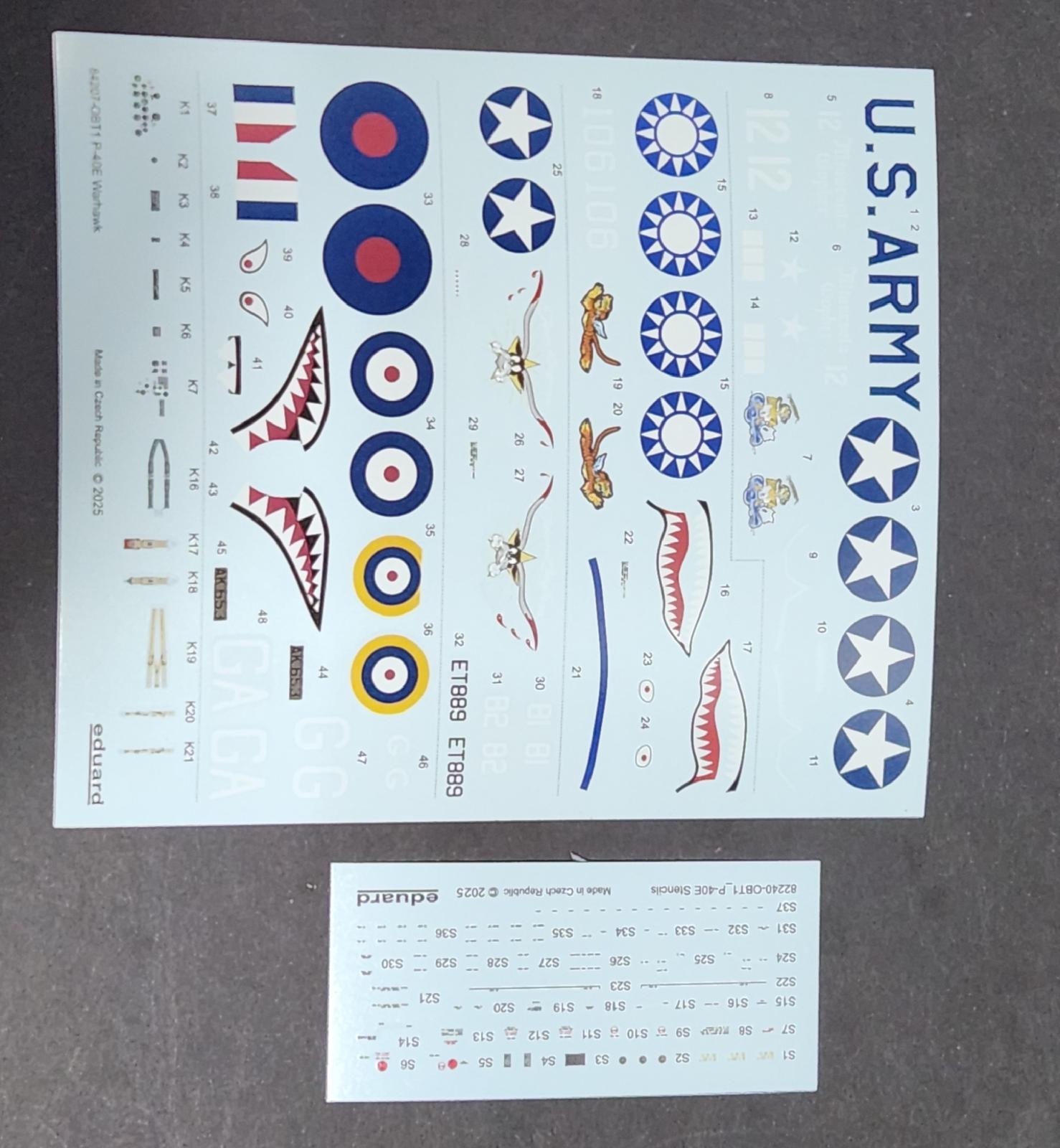 2025 has seen several versions of Eduard’s P-40E released. Before this year, their P-40s consisted of M & N variants. Included in the 2025 lineup of P-40E Warhawks, Eduard has released a Royal Class Dual Combo R0023, P-40E Pacific Star Combo No 11185, the Kittyhawk Limited Edition Dual Combo No. 11187, the P-40E ProfiPack No. 82241, and the subject of this review, the P-40E Weekend Edition No. 84207.