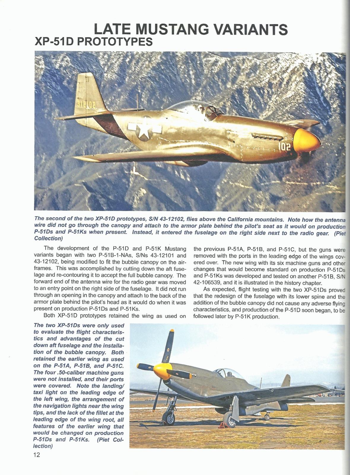 The next chapter includes a nice description of the main characteristics of the XP-51D, the P-51D and its twin, the P-51K, following by Mustangs Mk.IV and IVa and in general Commonwealth Mustangs (Australian production) to wrap the chapter with sections on the reconnaissance Mustangs, the F-6D and F-6K, the twin seaters TP-51D and TF-51D, plus the lightweight P-51H and some experimental Mustangs.