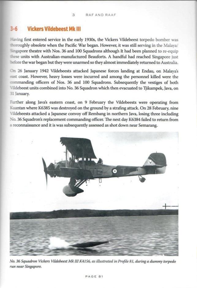 Several squadrons of RAF and RAAF fighters and bombers withdrew from Singapore to continue fighting from Sumatra and then Java. These were augmented by direct reinforcements flown into those locations. These aircraft mainly comprised Hudsons, Blenheims and Hurricanes but there were also more obscure types such as Albacores and Vildebeest.