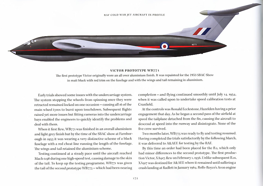 The book features over 300 different colour profiles of the following types: Gloster Meteor, de Havilland Vampire, de Havilland Venom, English Electric Canberra, Supermarine Swift, Hawker Hunter, Vickers Valiant, Gloster Javelin, Handley Page Victor, Avro Vulcan, Blackburn Buccaneer, English Electric Lightning, Hawker Siddeley Harrier and SEPECAT Jaguar. Two types most notable by their absence are the McDonnell Douglas Phantom and the Panavia Tornado, both of whose omission is a major fault in my view.