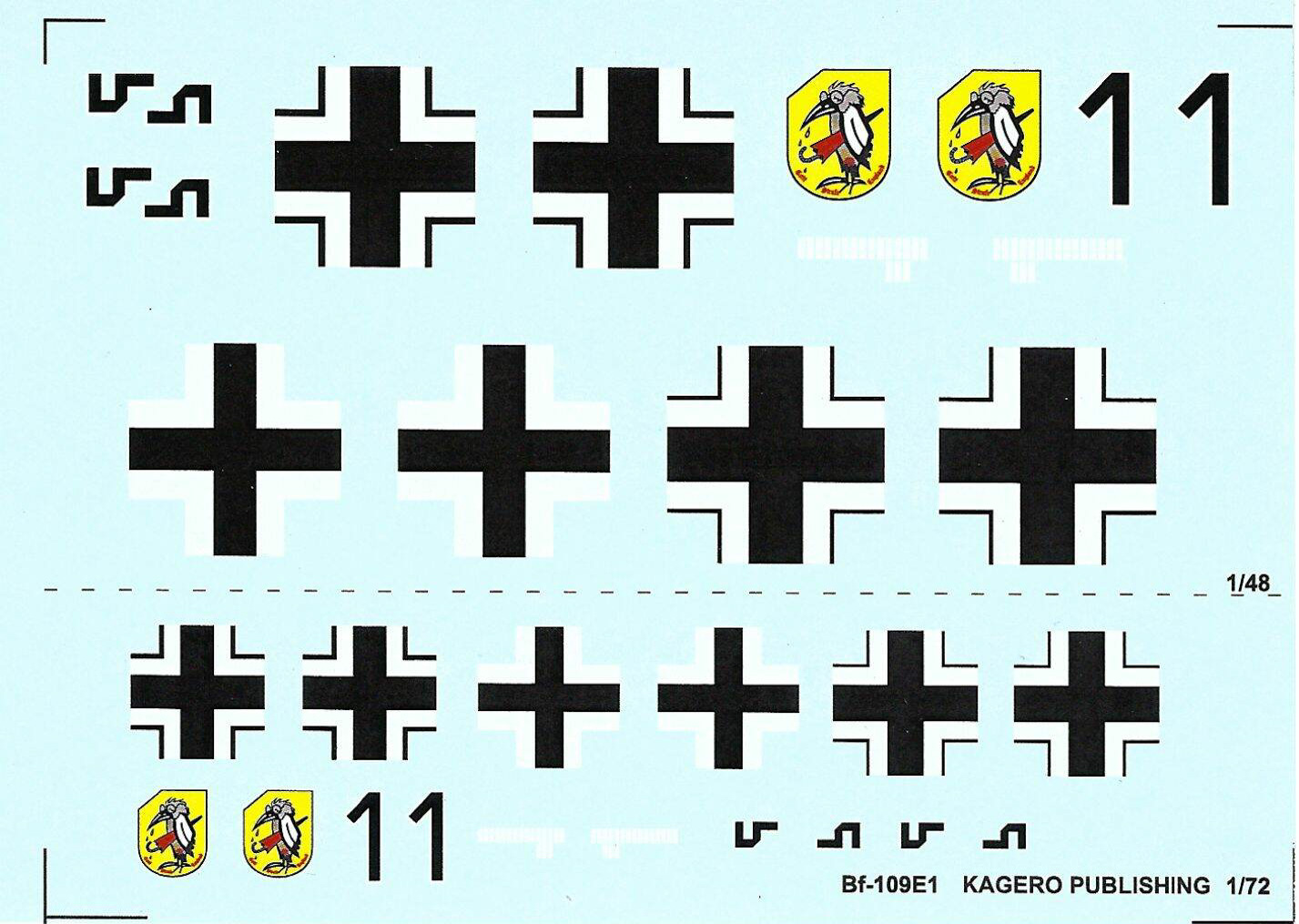 Safely packaged in a resealable sleeve is a beautiful 8.5 x 11 booklet and a small decal sheet. The booklet contains 25 pages of high-quality paper featuring clear photos. Most pages have two large photos which make details easy to see. A variety of variants are covered in this volume from the early E-1 to the E-3. This period of use for the Bf-109 was quite colorful with a variety of paint schemes. Kagero has shown most of the paint schemes. There are 16 pages of photos, four pages (not including the back cover) of wonderful color profiles. Six aircraft are included in the profile views. There are six pages of line drawings to show the differences and changes in the variants. The drawings are in 1/72nd and 1/48th scale.