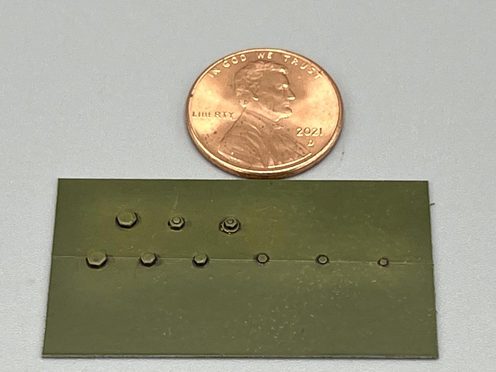 Making bolt heads is quick – especially with the three larger sizes. The quality and realism of the three larger sizes was also excellent. The three smaller sizes take more time as you must separate the resulting round piece from the hex piece. The smaller sizes were also less distinct and therefore not quite as realistic at the 1:35th scale. If you are working in 1:16th, RP Toolz also makes a larger-sized hex punch and die set that goes from 1.5mm to 5mm.