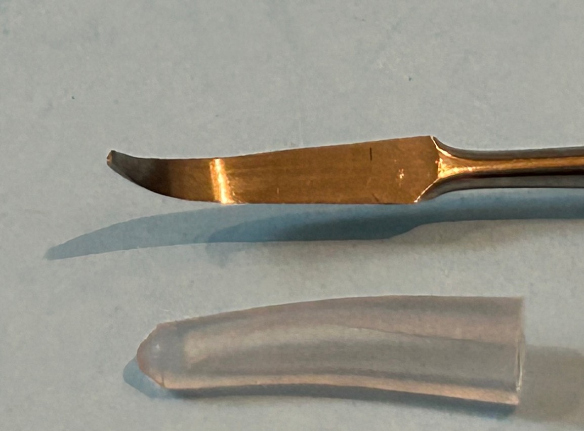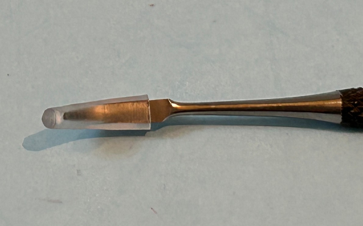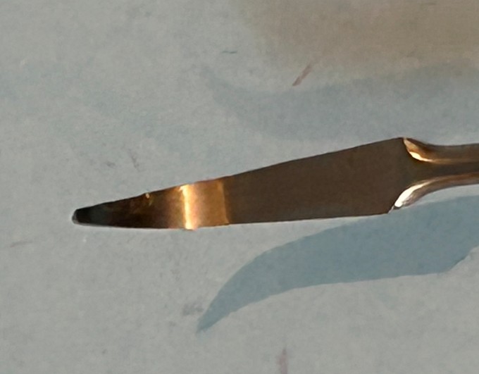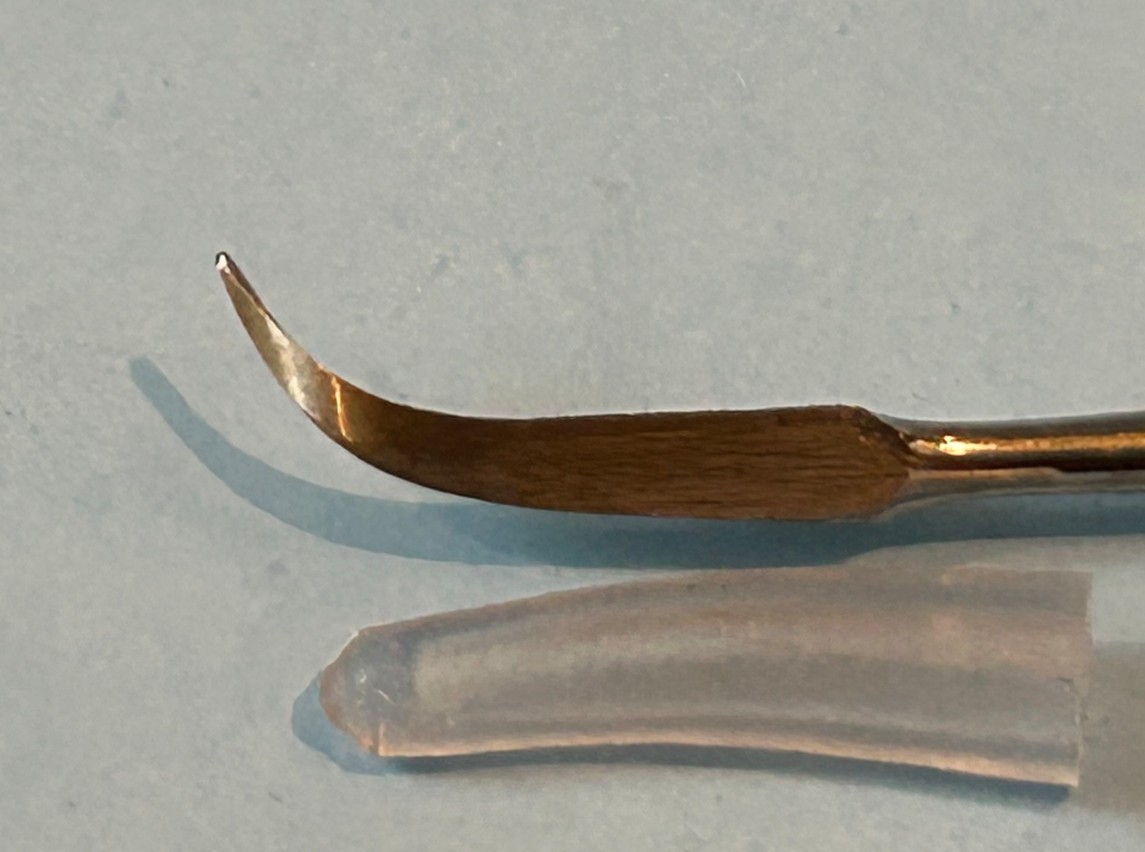 This scriber features the sharp cutting tip to clean up existing lines or to scribe brand-new lines. Another nice touch is the ergonomic, knurled handle that helps keep a better grip on the tool than without (I don’t know how old my current scriber is, but it does not have a knurled handle). When using scribers, it’s always better to not hurry. It is important to proceed with a light touch, then follow up with increased pressure on additional passes until you are satisfied. It is always easier to make an additional pass than to dig too deep and make a mess of the cut. If you are scribing new lines, I find it helpful to use a guide. I will use Dymo Label embossing tape or a strip of styrene stock as a guide for a straight line. If you are doing complex curves, a stainless-steel template is of great help [I have several from Tamiya, Hasegawa, and Eduard, etc.]. It is highly recommended to keep the scriber perpendicular to the surface you are scribing and just a little practice will get you on your way. I would also note that it’s a good idea to practice on an unobtrusive part of a kit. Different kit manufacturers use different plastics resulting in varying plastic hardness. You can use a couple of different grips: