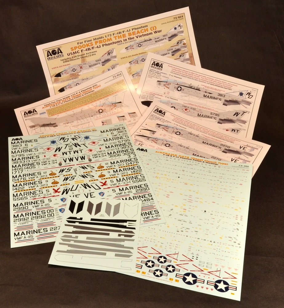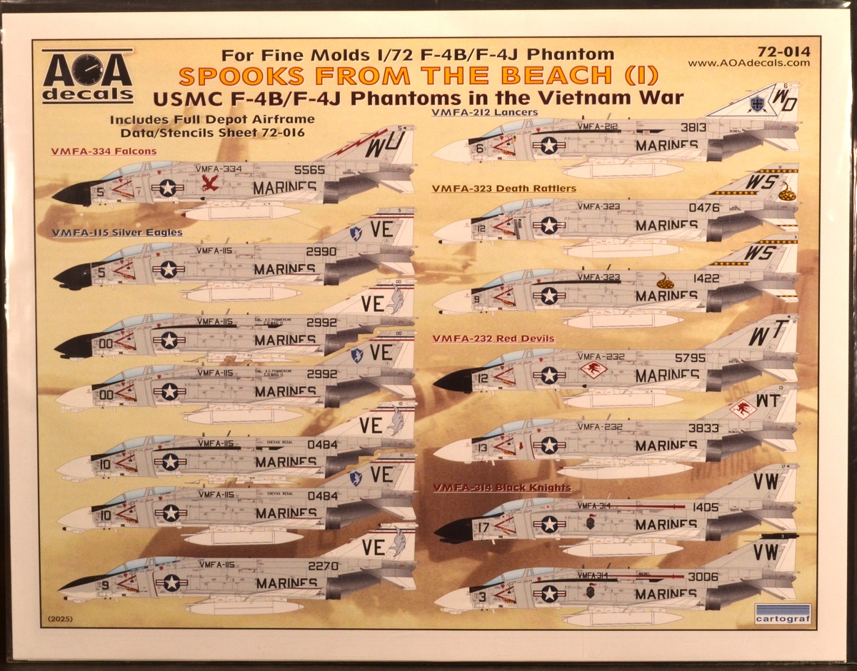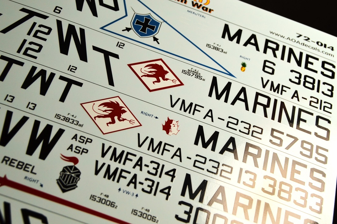AOA Decals has provided the IPMS/USA Review Corps with a wonderful decal set for Vietnam War-era markings for the US Marine Corps F-4B/F-4J Phantom. This is part one of a two-part set you can purchase from AOA Decals for the Phantom (72-014 & 72-015).