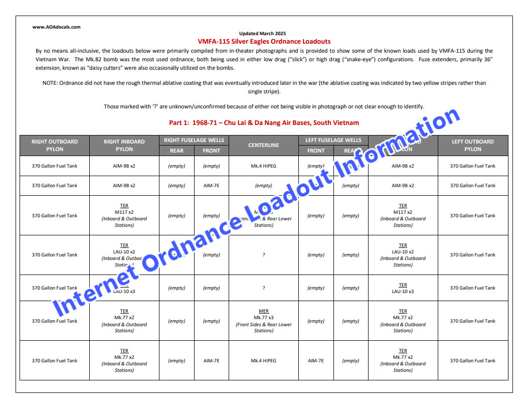 Bonus: For more build information, AOA Decals’ website also gives you ordnance loadout information per squadron and time frame so you can build your Phantom more historically accurately.