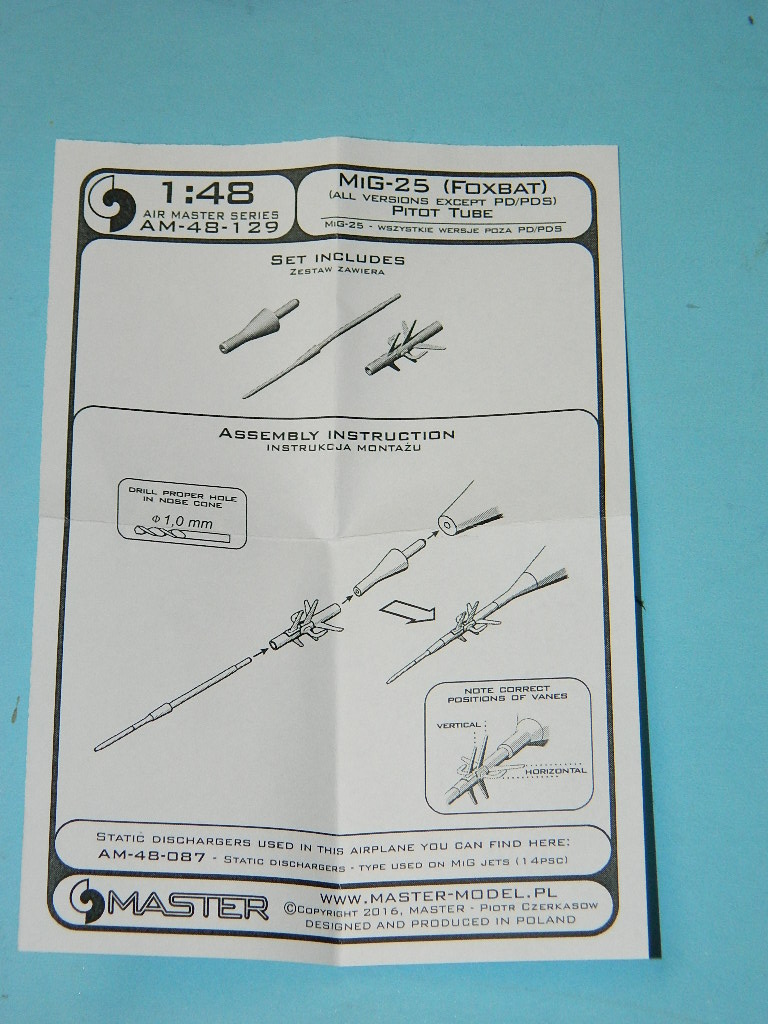 This is, once again, a much improved upgrade to the kit plastic. Consisting of 2 metal part directly replacing the kit pitot probe, and what appears to be a very delicate 3D printed data vane sleeve with all the various blades in micro detail. How does he do it , well, I don’t know, ask him. In any event,this is an easy addition to improve the longevity of your kits’ appearance… and by the way, the instruction sheet is fantastic as well!