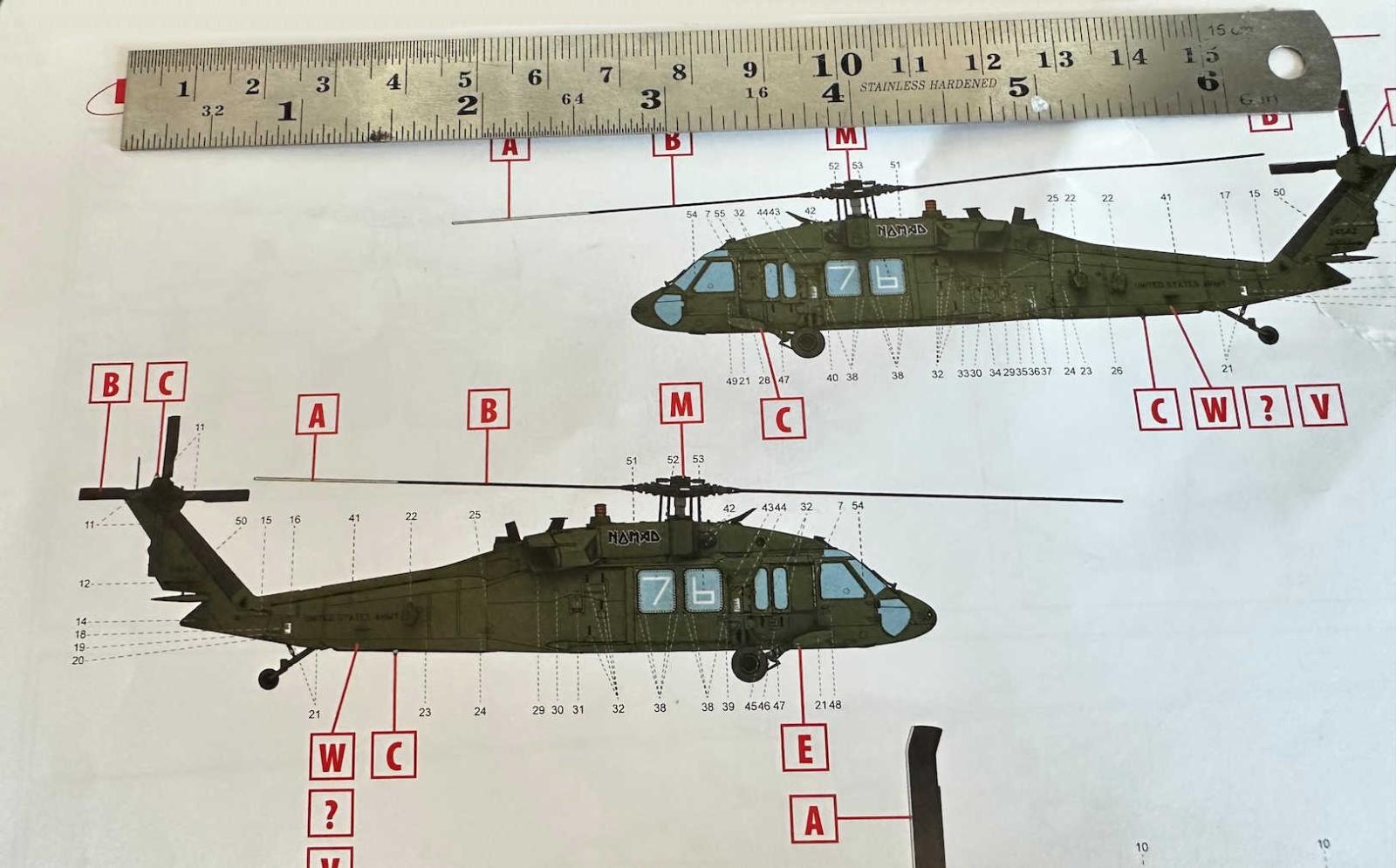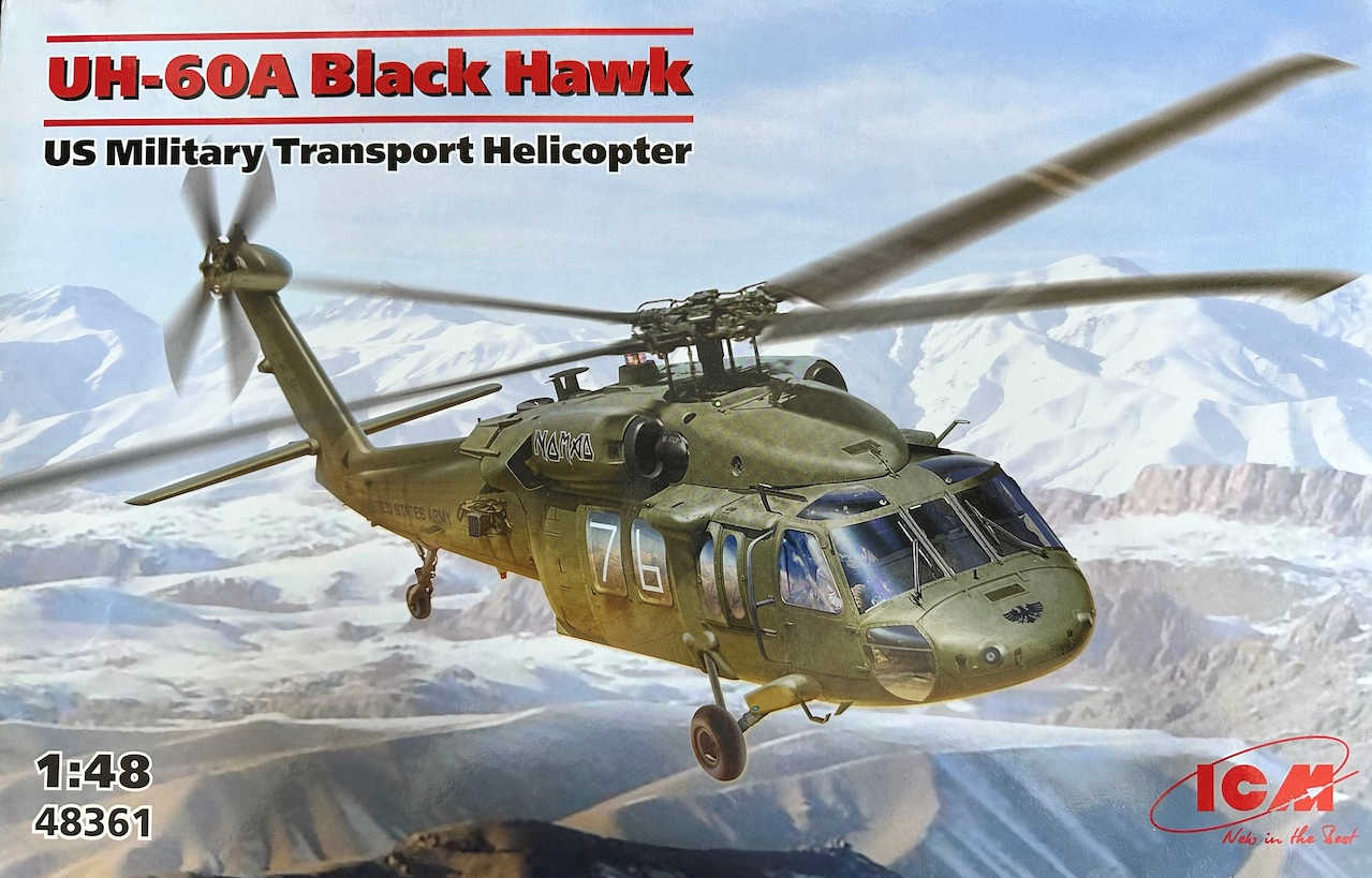The UH 60 Blackhawk line has become a staple of military forces around the world. It’s hard to think of a mission this helicopter doesn’t perform including troop carrier, rescue, special ops, electronic warfare, maritime patrol and anti-submarine duties. This release from ICM covers the first version of the Blackhawk the UH 60A troop carrier which entered service with the United States Army in 1979. Having built several ICM kits, this one lives up to the standard that they’ve established with finely molded details, excellent fit and reasonably good references in the instruction sheet and on the box. Decals are provided for three versions, a Blackhawk serving with US Army in Afghanistan in 2005, another serving with the Kentucky National Guard in 2009 and the subject of this build that served with the Montana National Guard 2013. The instructions are typical of ICM kits, very thorough with a parts diagram showing all the runners, including the parts that are not used. There’s also a paint guide, but it only lists ICM brand colors. However, cross reference charts are available online to make it easy to find the colors you need if you don’t have the ICM paints.