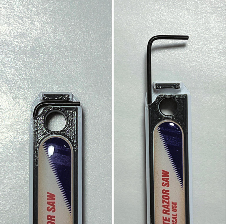 This tool is actually a system, with interchangeable straight, curved or Y-shaped attachment fixtures and blades of different cutting variations - basic rough-cut blades to “Ultra Smooth” very fine toothed blades. The blades can be mounted in a number of different positions and/or angles to facilitate a variety of cutting positions or angles. The tool includes it’s own small Allen wrench tucked away at the bottom of the handle (easy to miss if you don’t know its there) to loosen and tighten the small set screws that allow for changing or adjusting the blade or attachment arm. According to the Be Izzi web site, the tool is made to be able to use a variety of cutting blades, not just those manufactured by the company.
