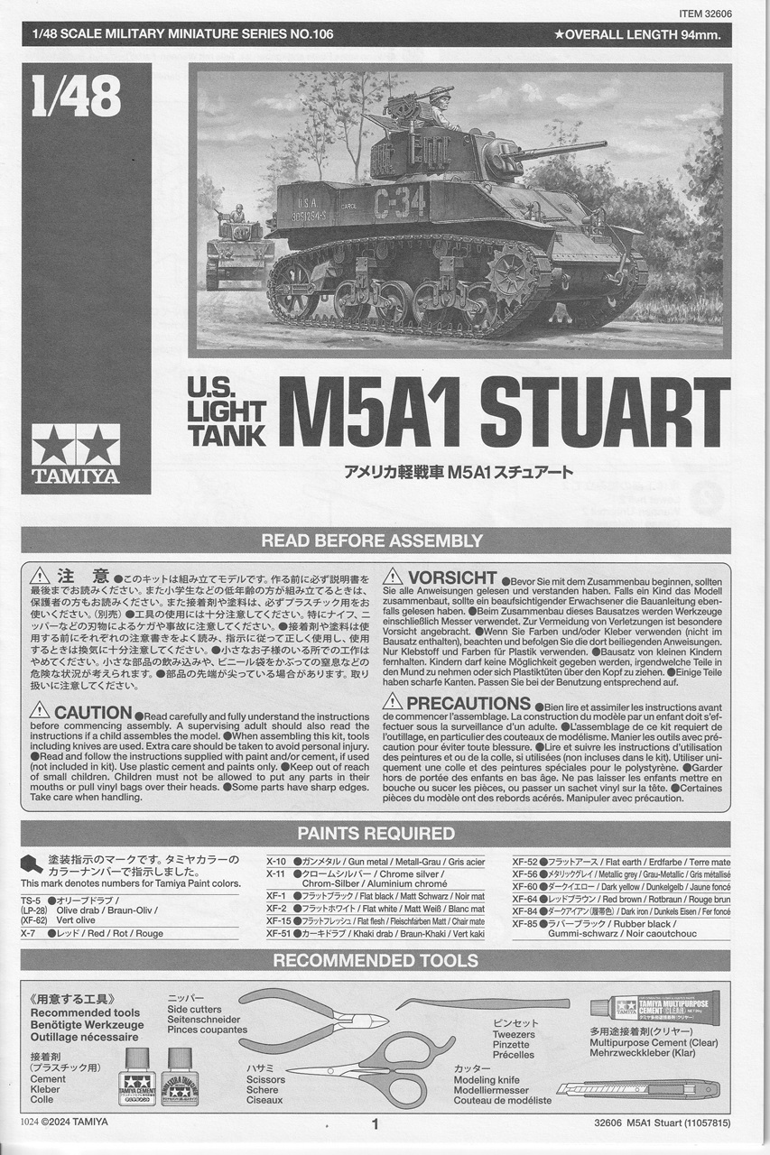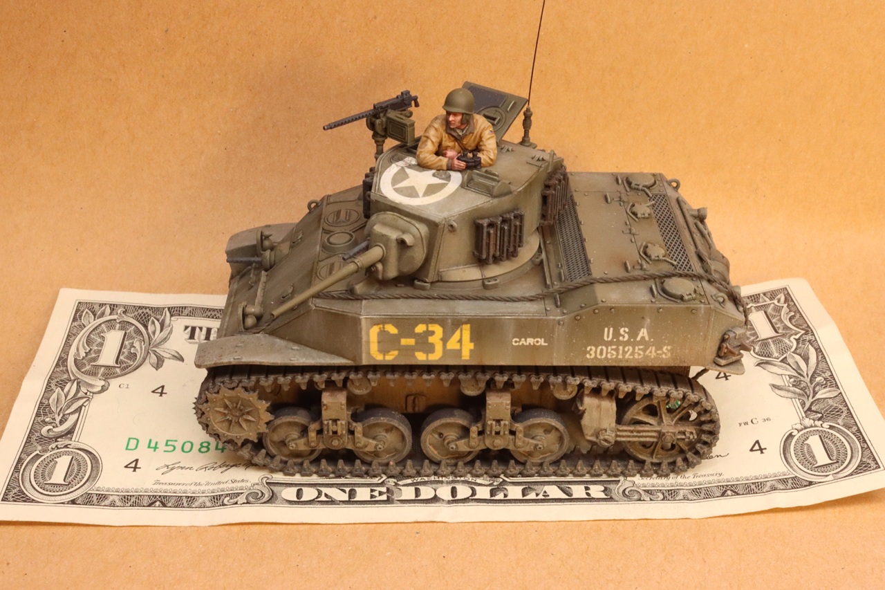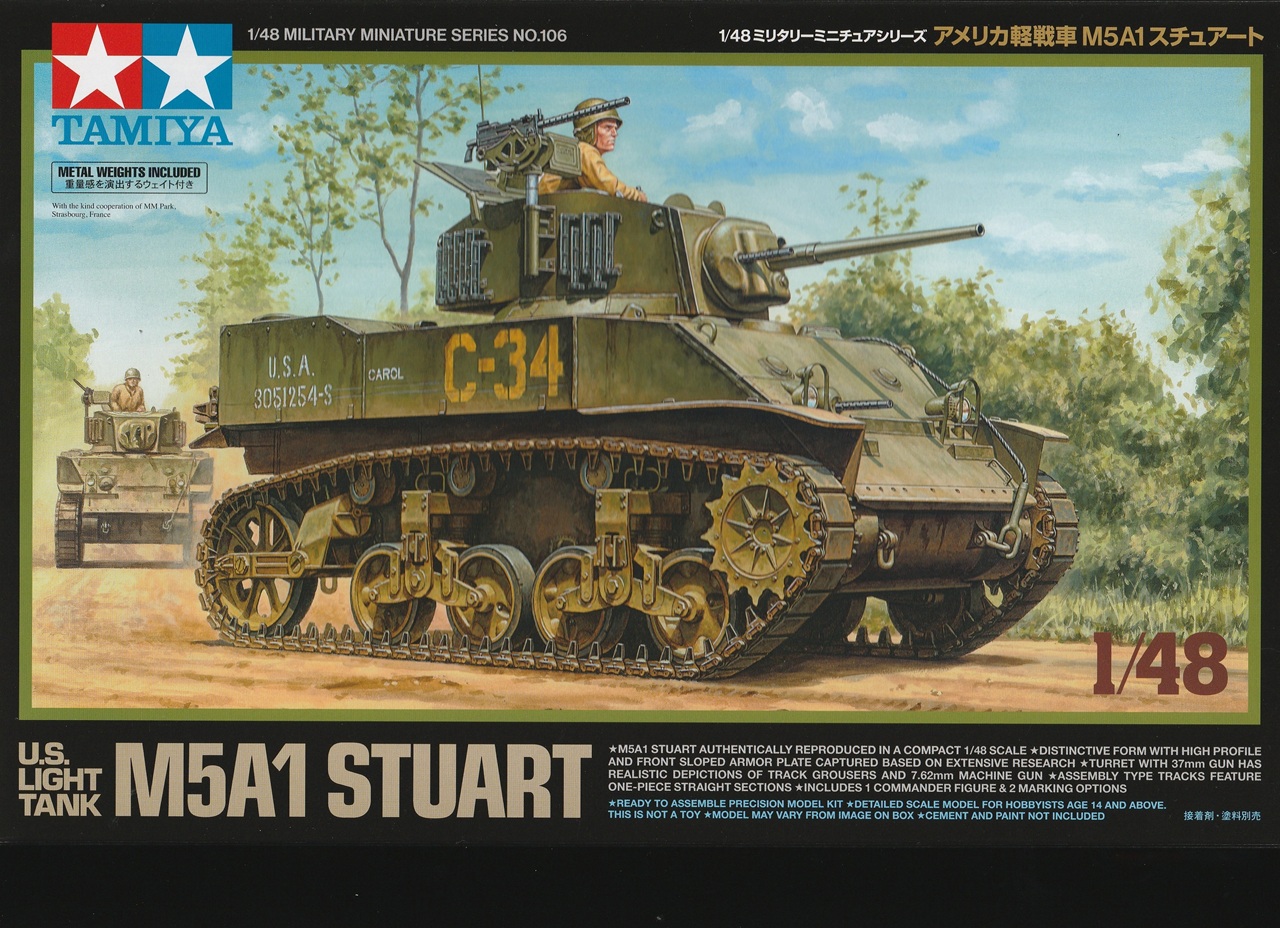 I’ve built a few Tamiya armor kits over the years but never one of their new 1/48th scale kits. I thought that I would dip my toes into Tamiya’s quarter scale pond with their new U.S. Light Tank M5A1 Stuart. By the time the M5A1 entered service it’s 37mm gun was no longer effective against German armor. However, the M5 still saw extensive service in all theaters of the war until its end. The Stuart had the advantages of having speed, reliability, mobility, and transportability, and were available in large numbers. The Stuart was used effectively for scouting and infantry fire support.