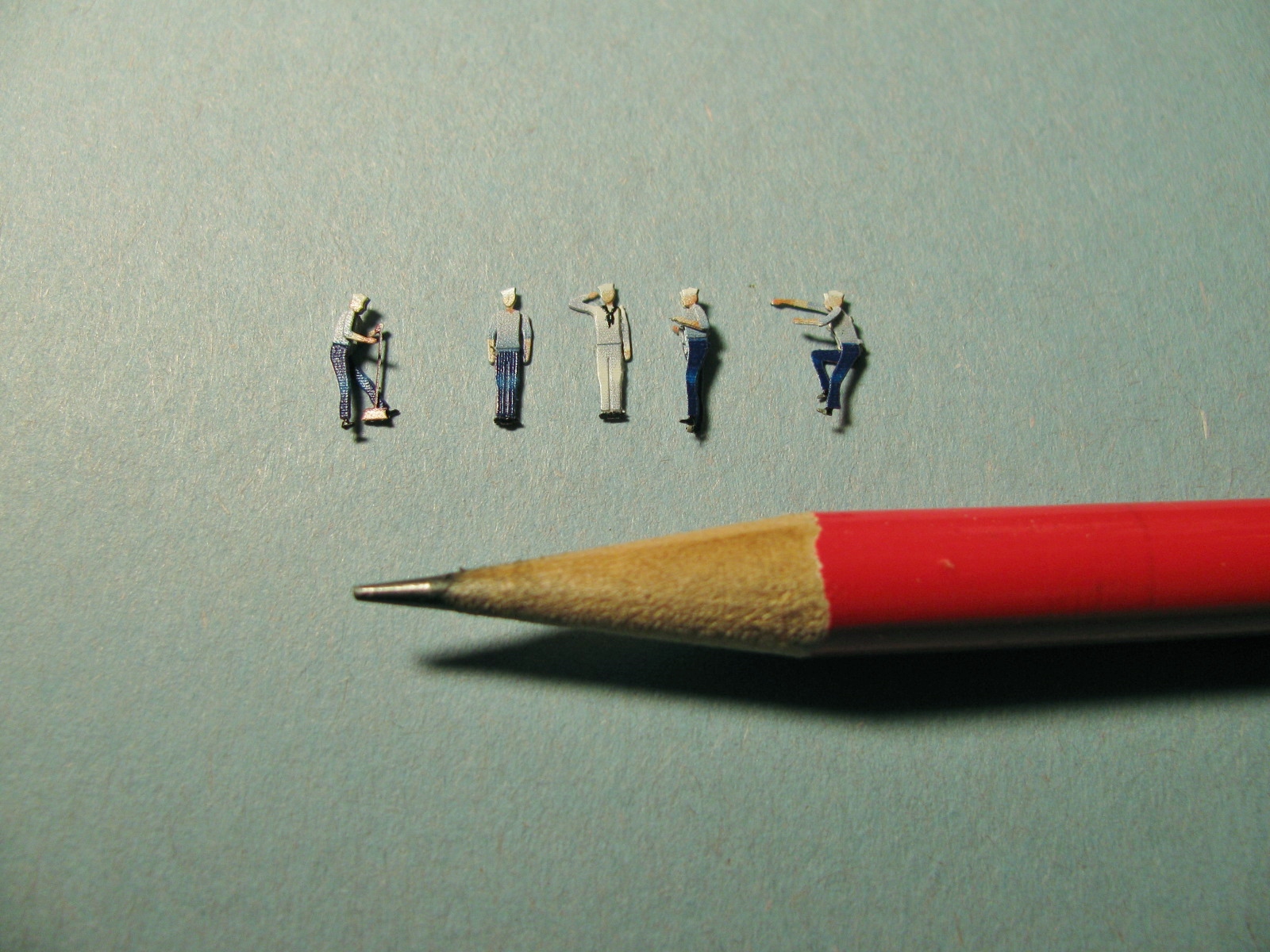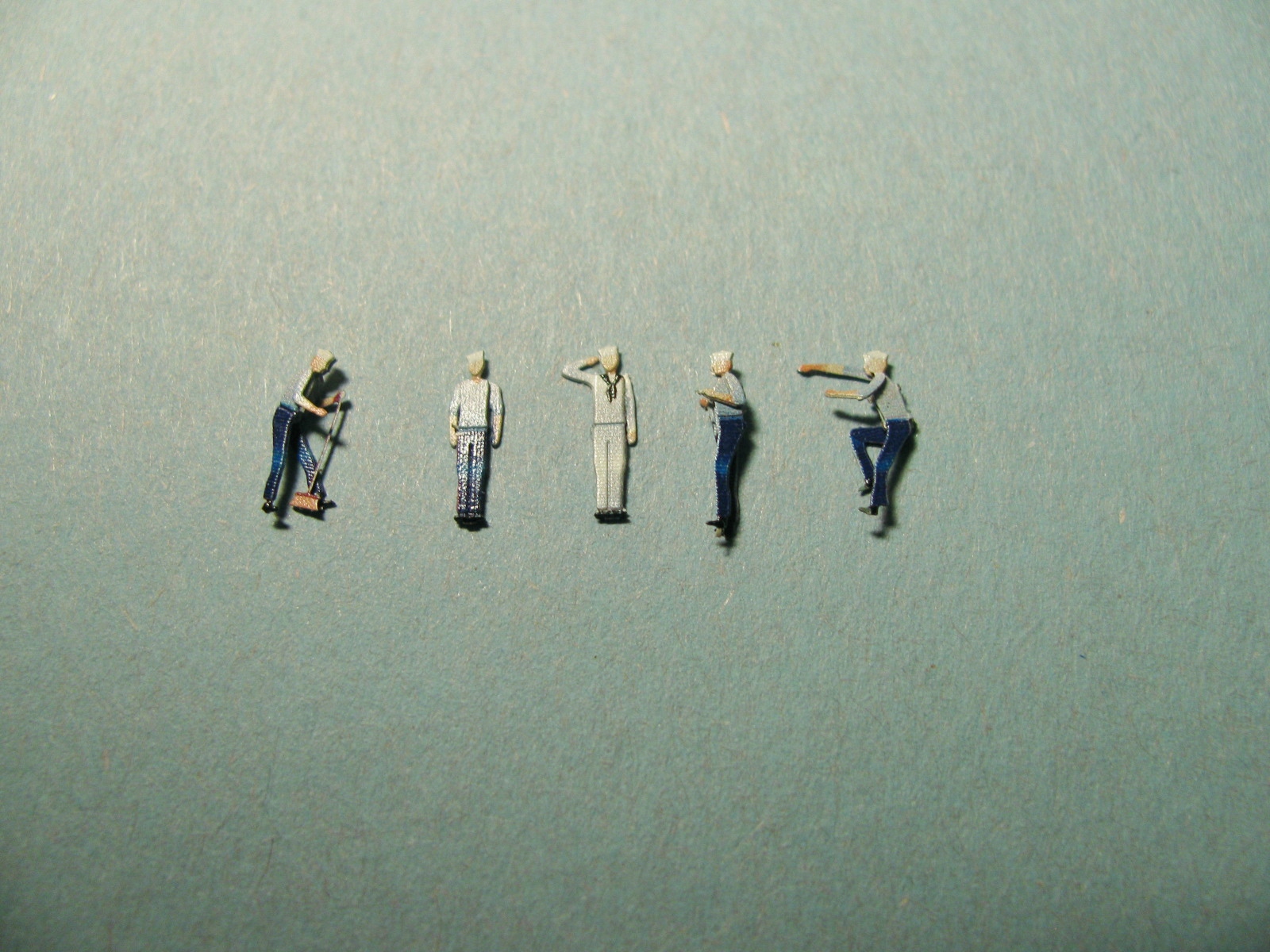 When I folded a few of the figures for this review, I did have one that broke at a fold, but this was easy to fix. I am not sure about the value of the self-adhesive backside, and some figures require four folds of the body, so the adhesive is not always present where you want it. The figures that require four folds do look a little odd from the front or back, and the ones requiring a single fold will look odd from the side, but if posed to force the right perspective, they are a great addition. I requested my set for use when I build a cut-away submarine in this scale, and I think they will work very well in that environment.
